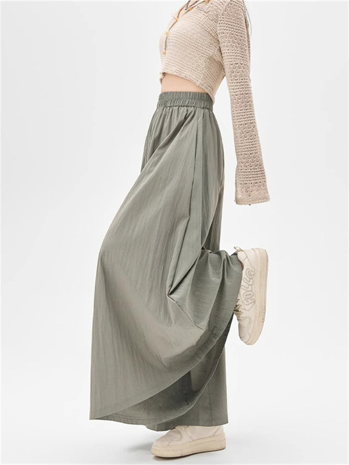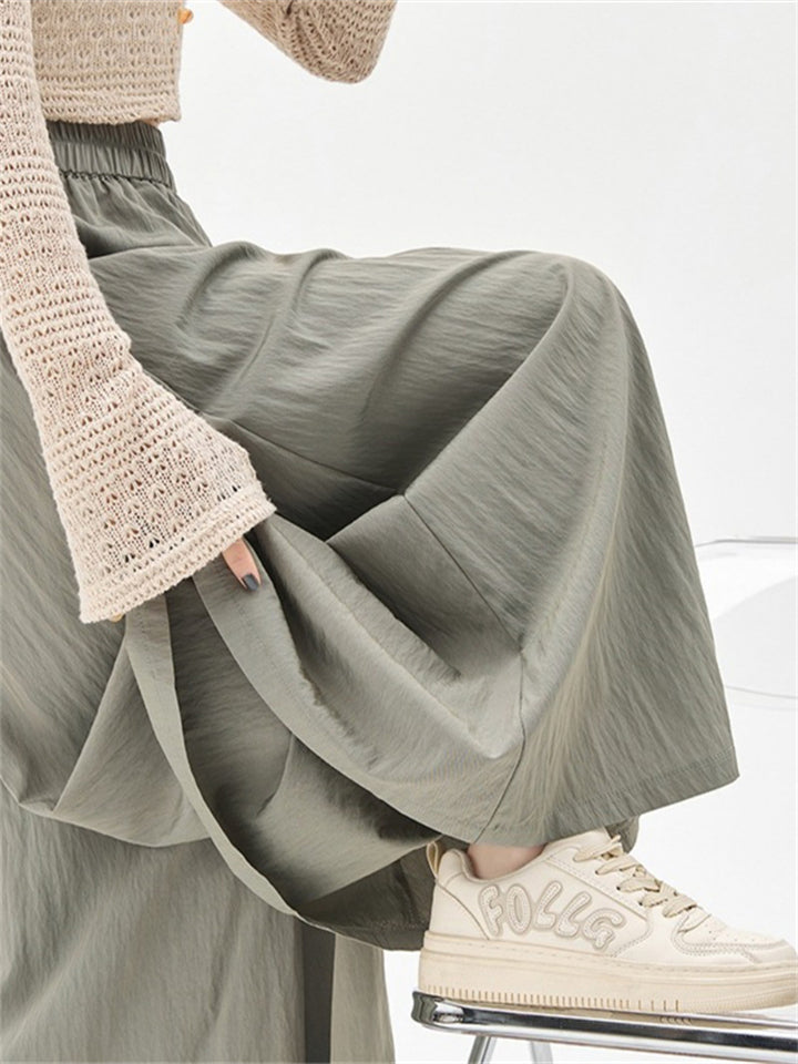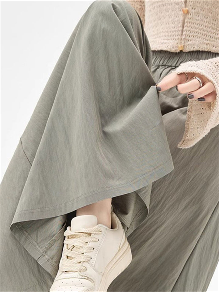 Women's Summer Cool Solid Color Elastic Waist Drawstring Pants