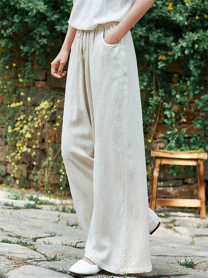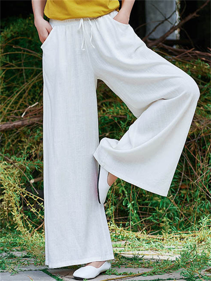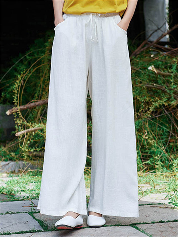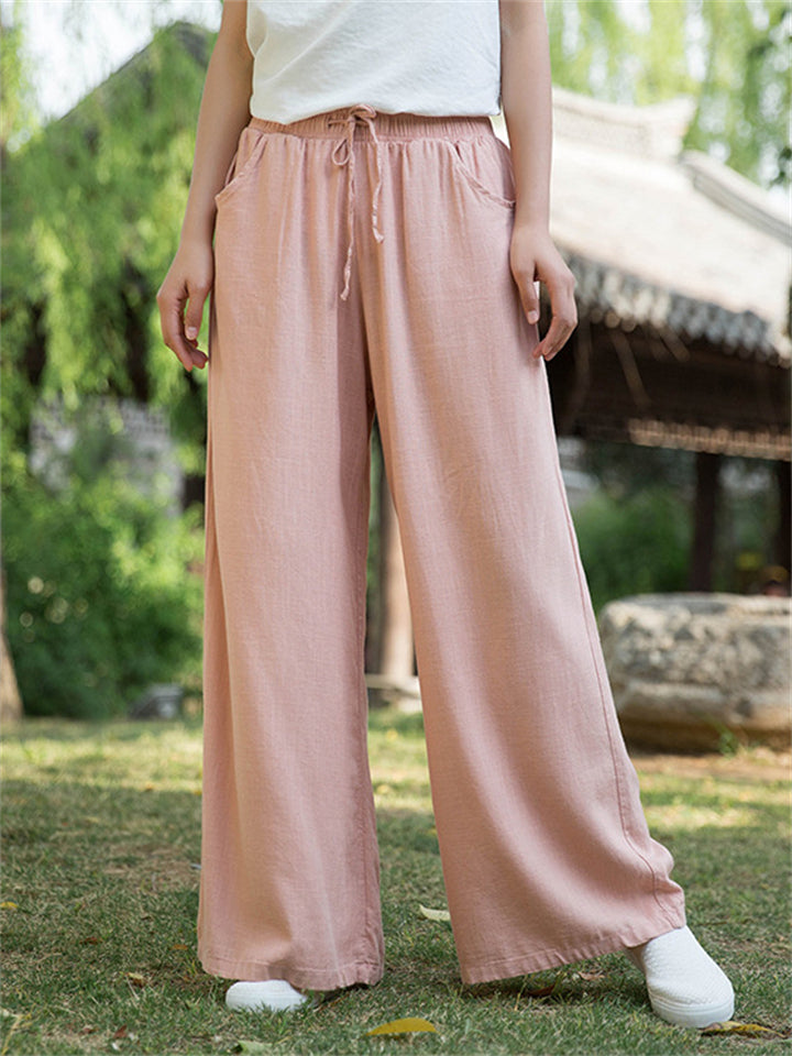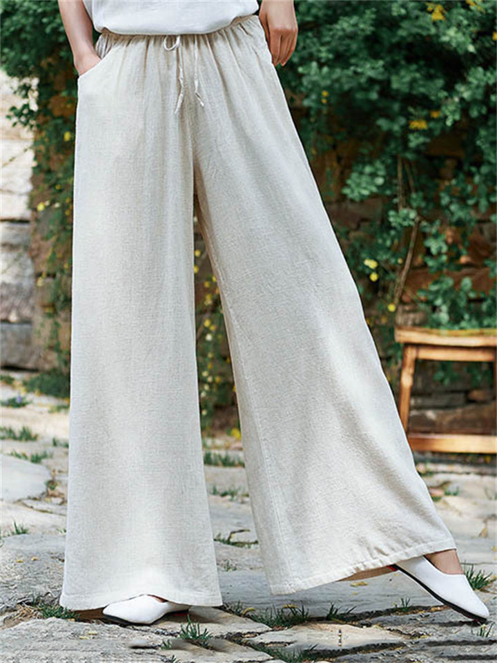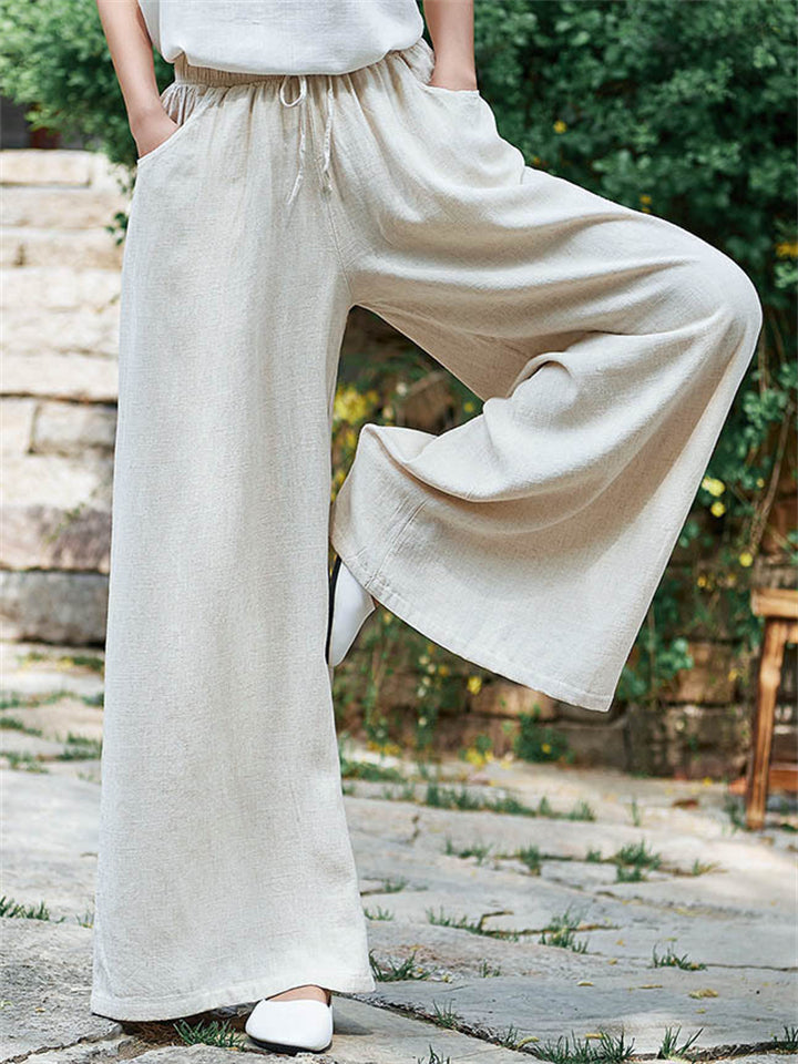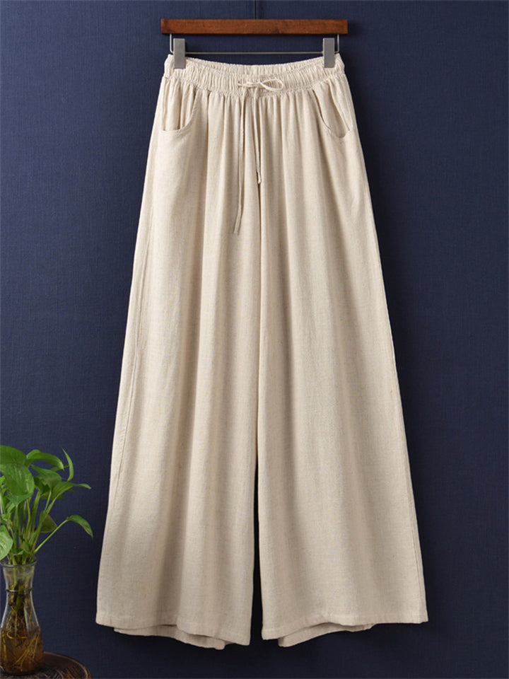 Plain Cozy Zen Linen Wide Leg Pants for Women