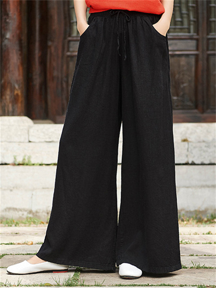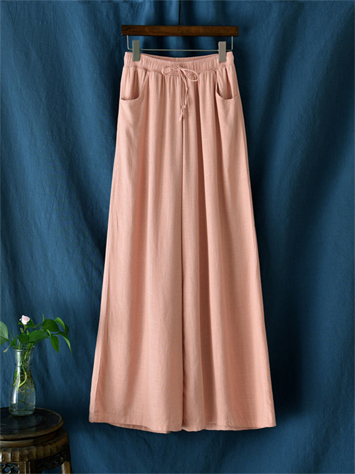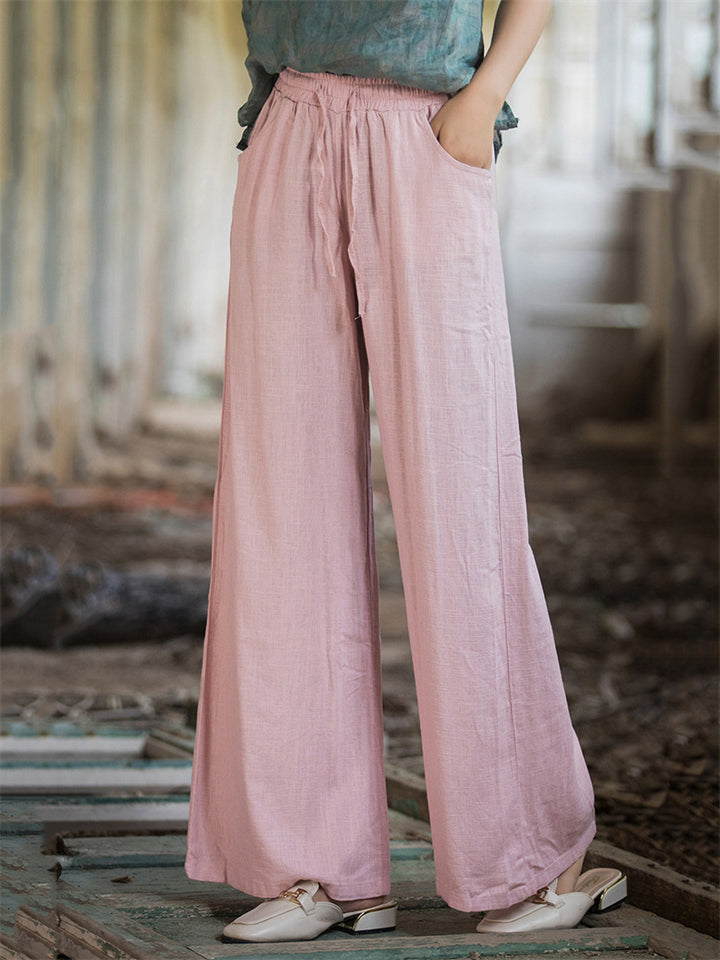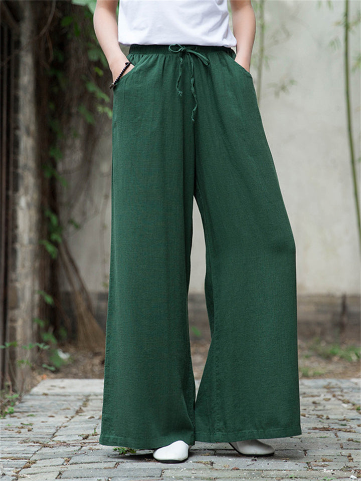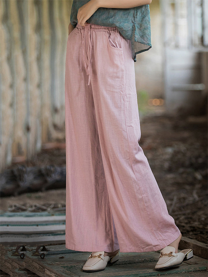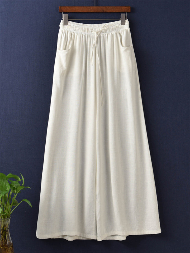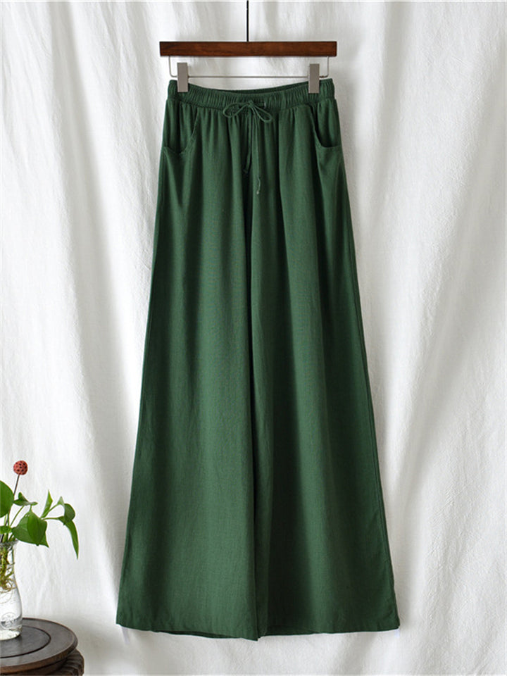 Plain Cozy Zen Linen Wide Leg Pants for Women