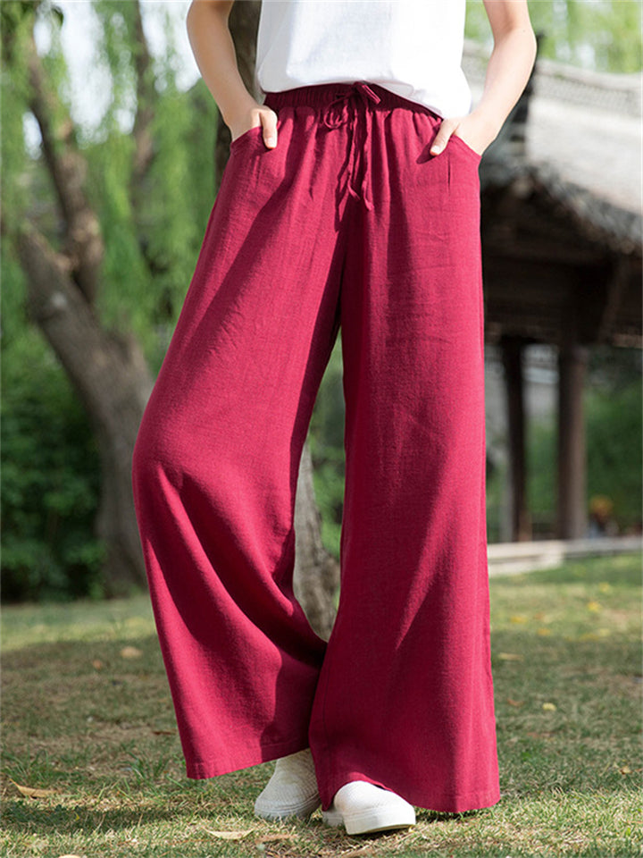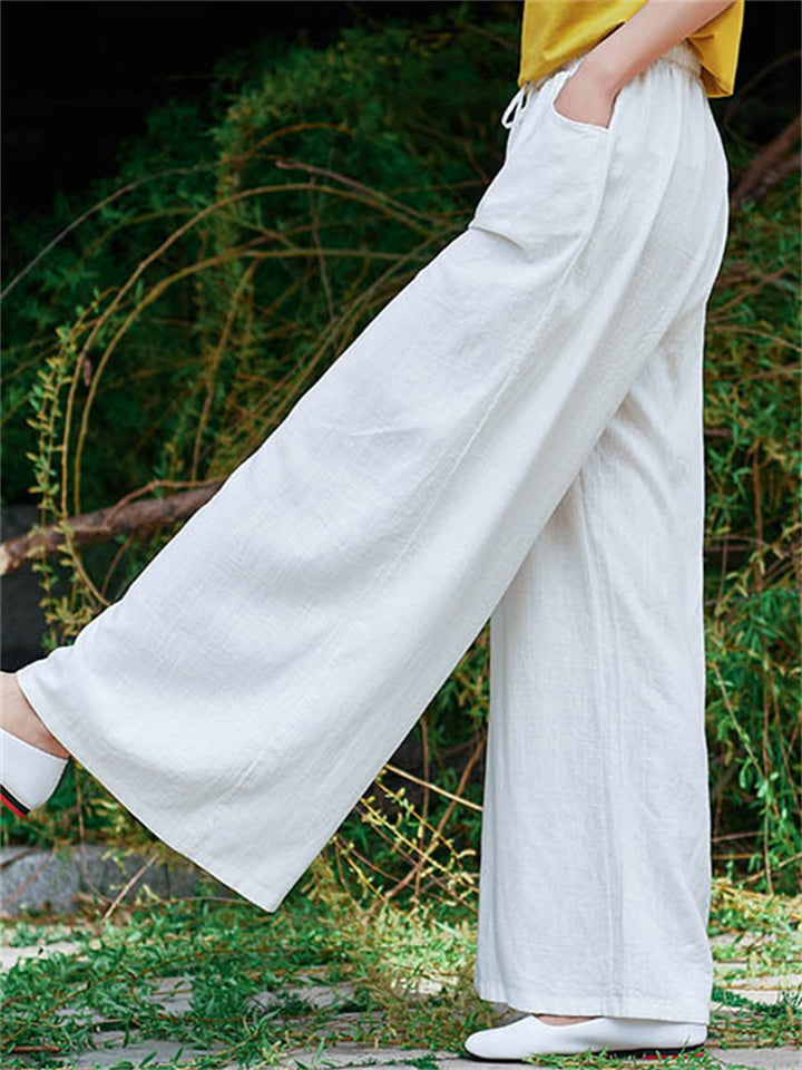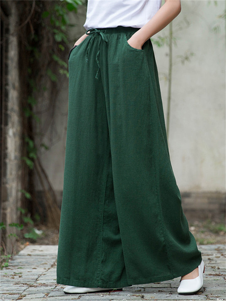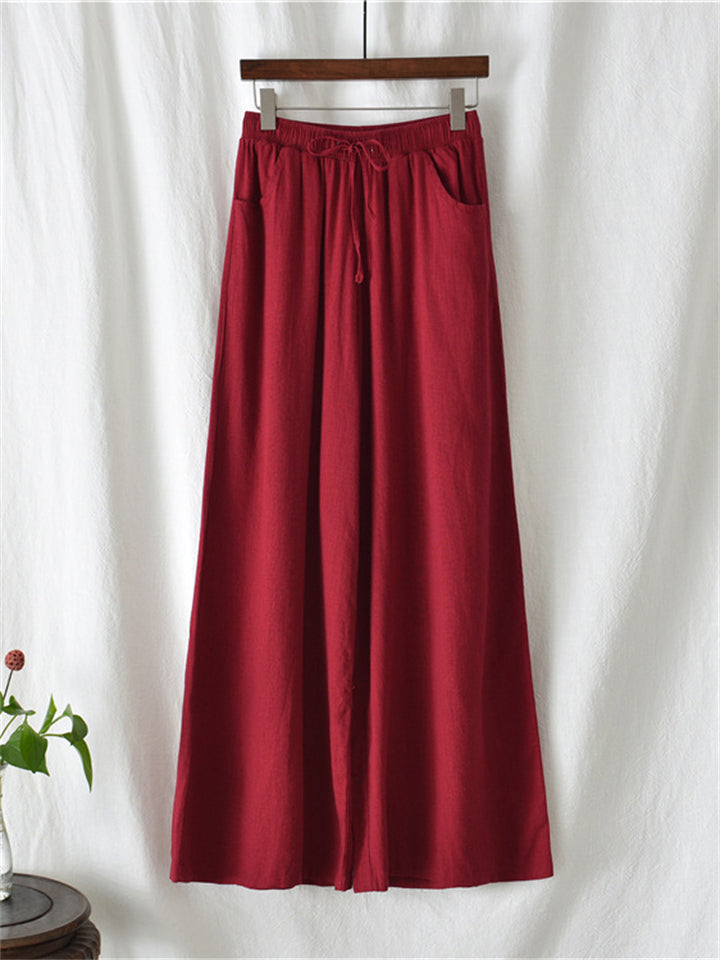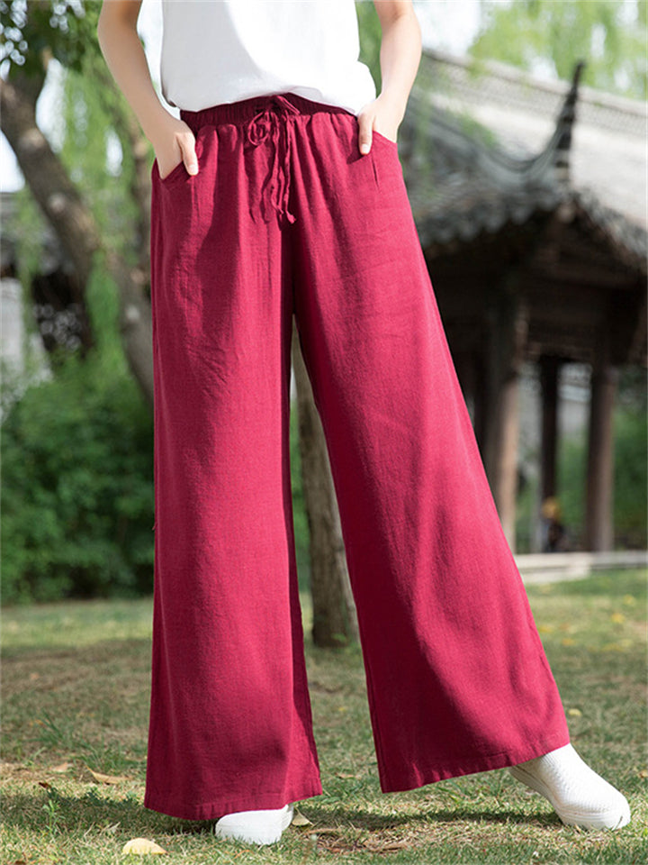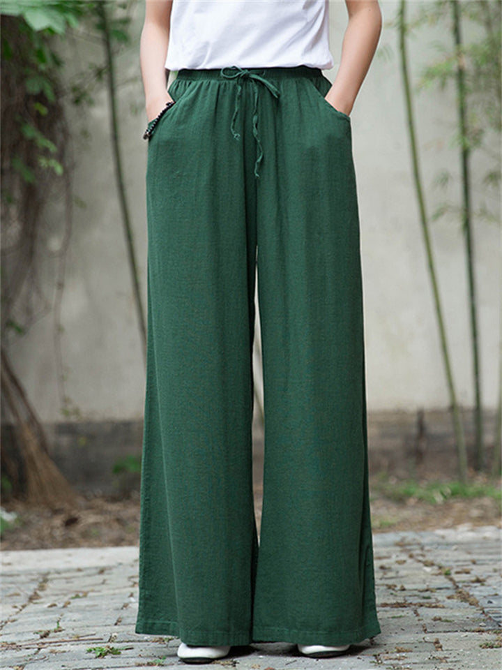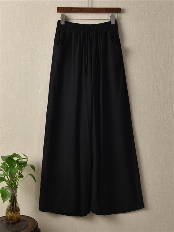 Plain Cozy Zen Linen Wide Leg Pants for Women