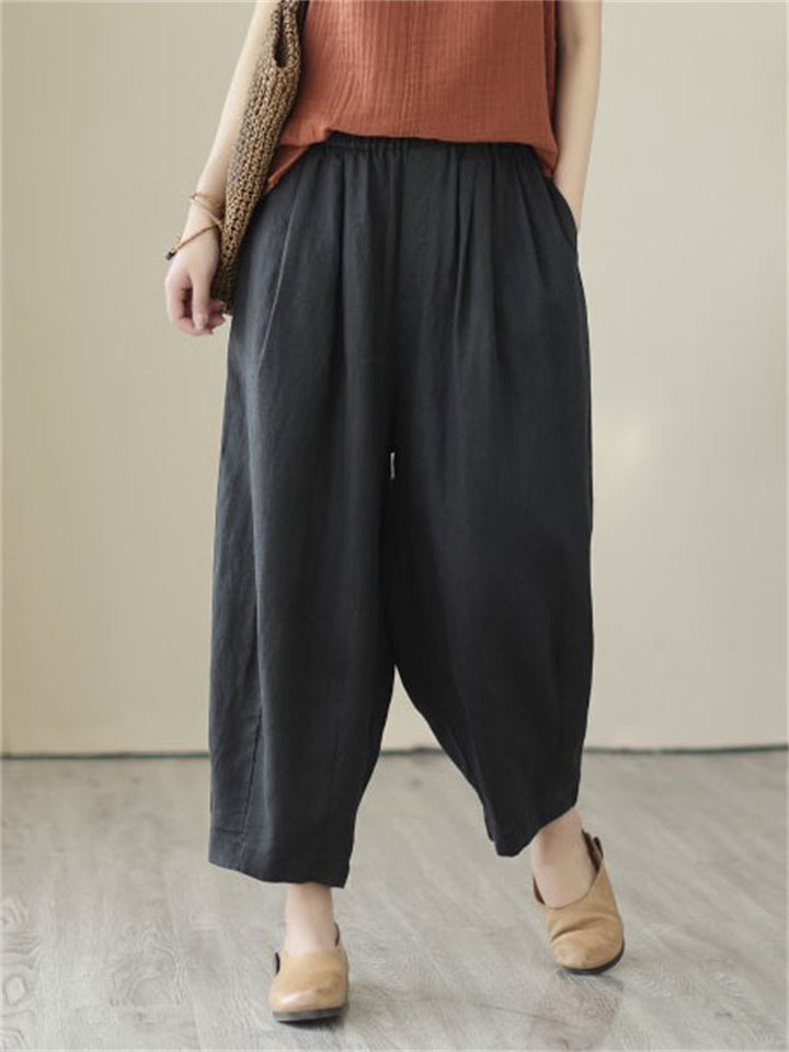 Plain Linen Extra Loose Pants for Women