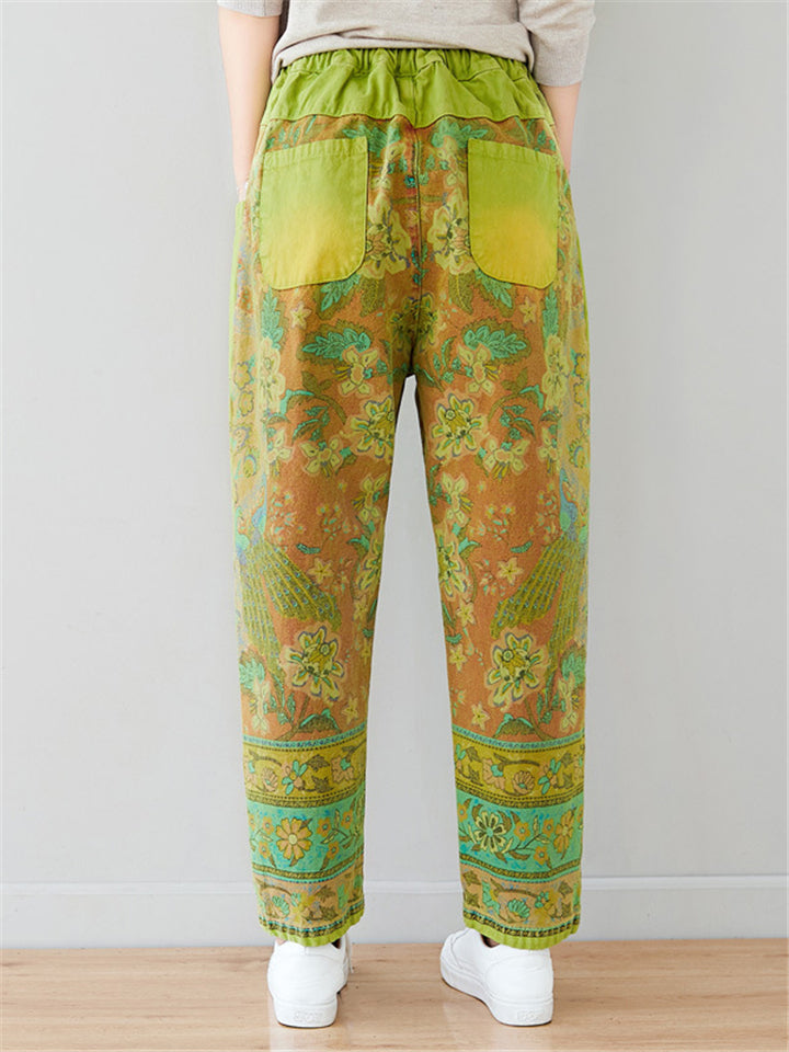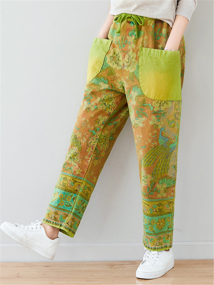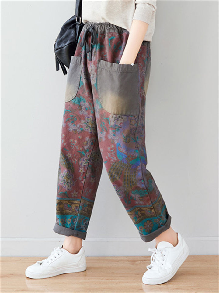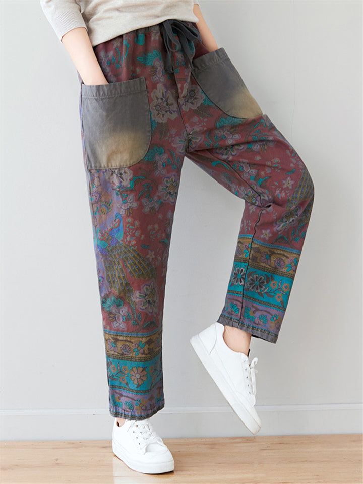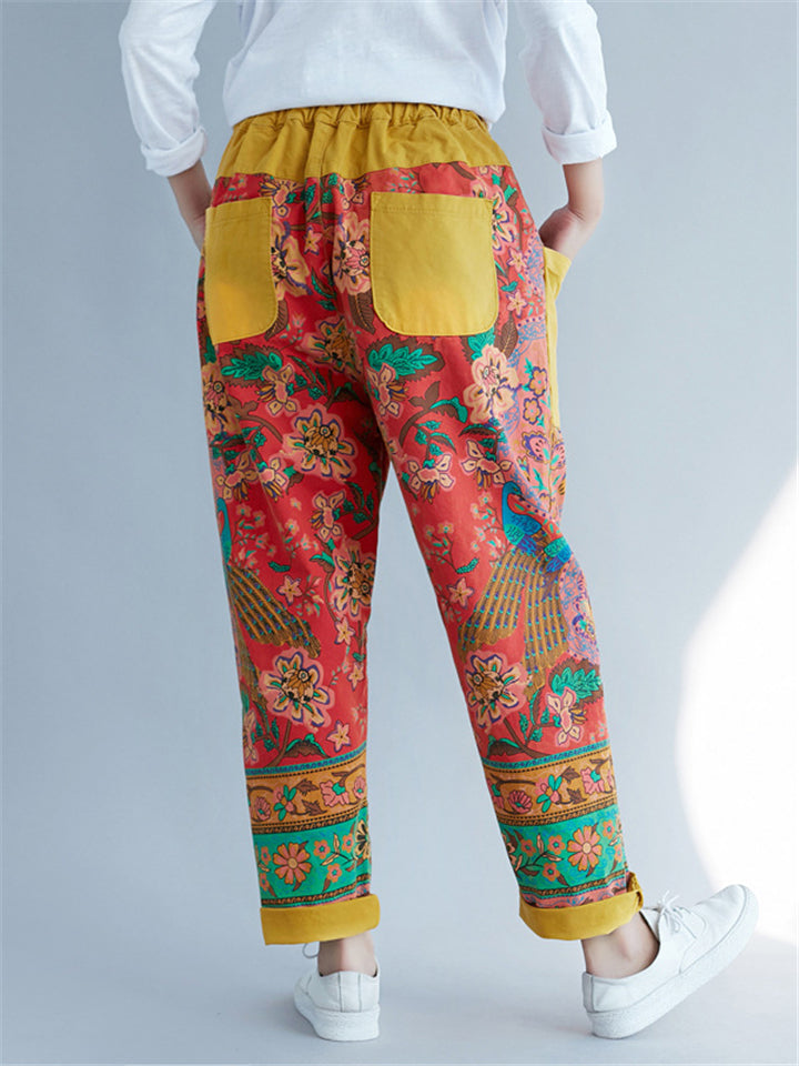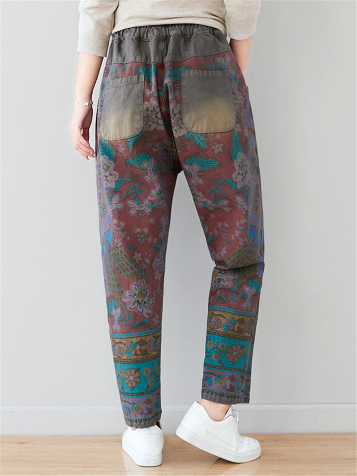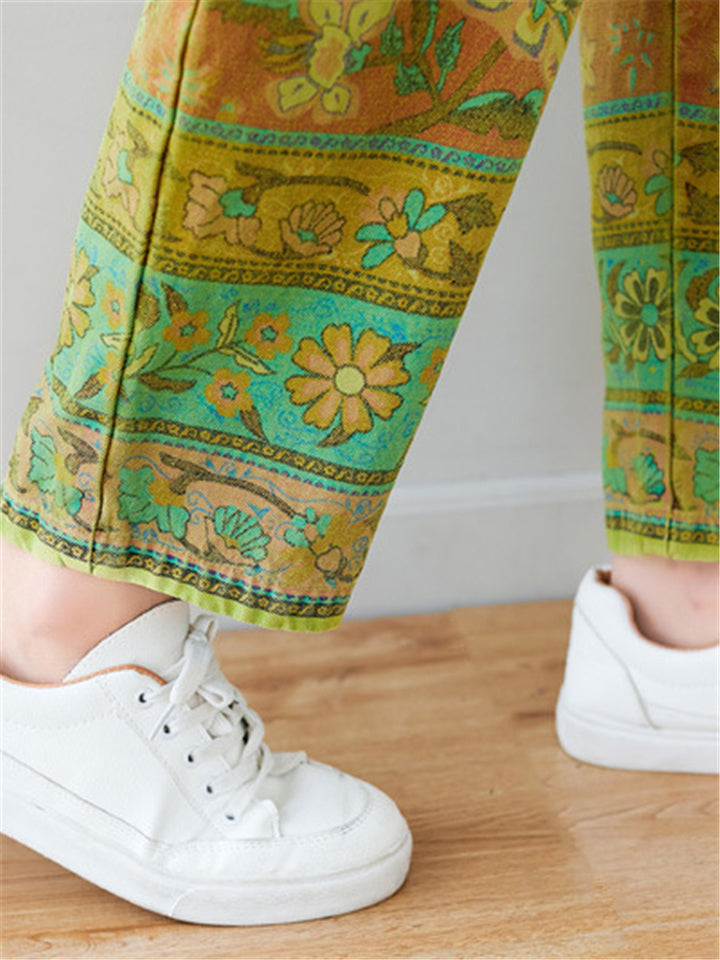 Women's Retro Ethnic Style Printed Loose High Waist Wide Leg Pants