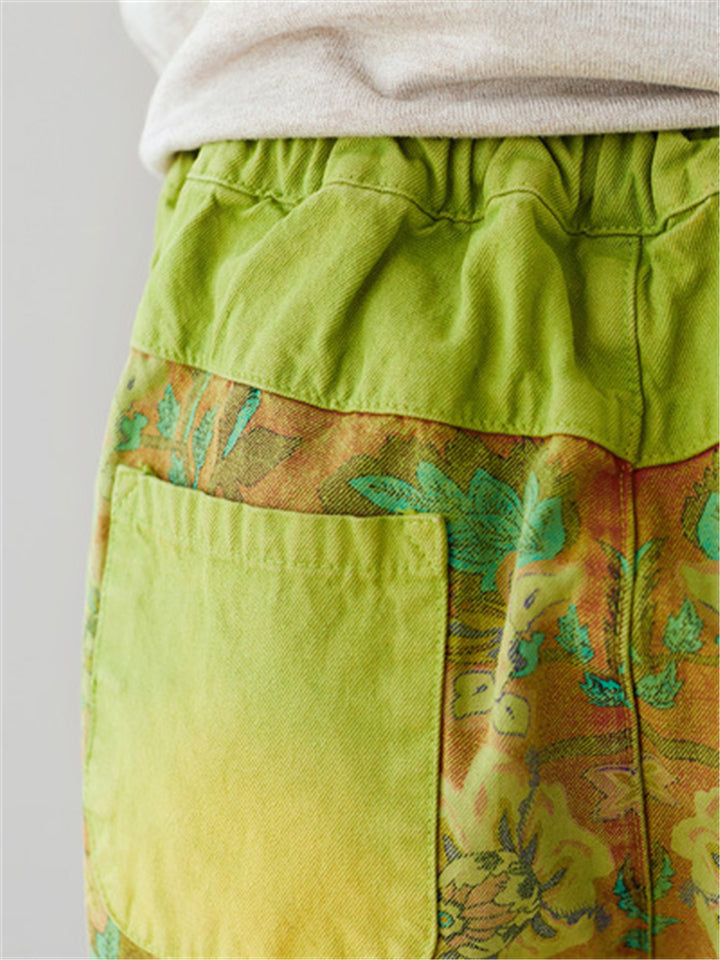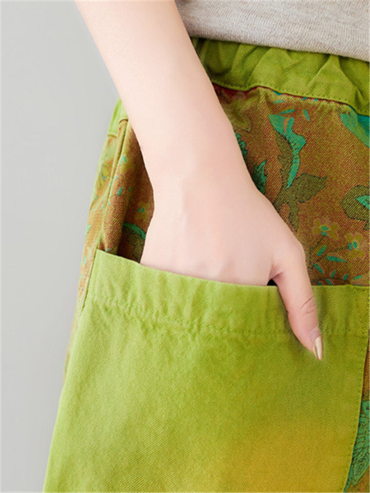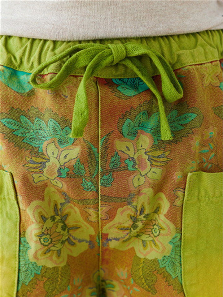 Women's Ethnic Style Floral Embroidered Elastic Waist Bloomers Pants