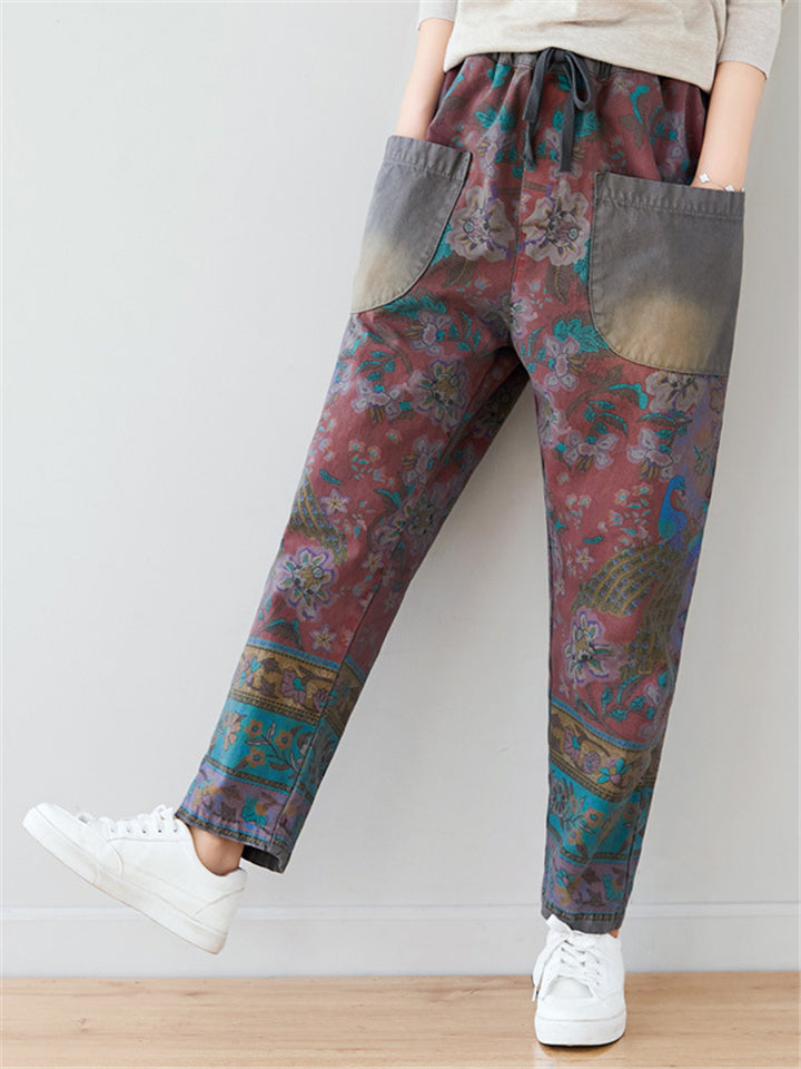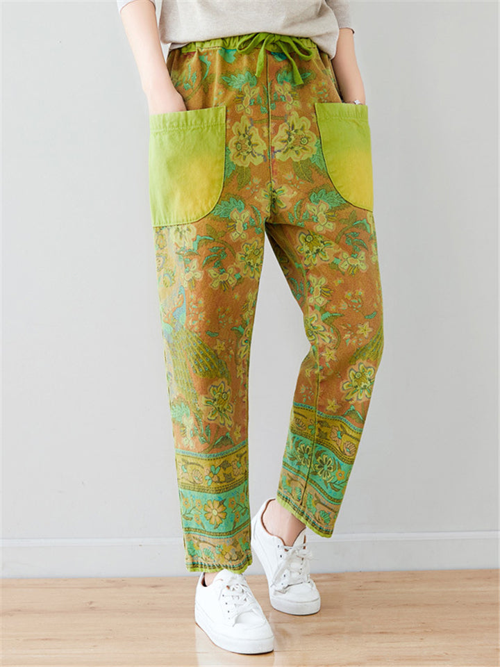 Women's Ethnic Style Flowers Embroidered Comfy High Rise Pants