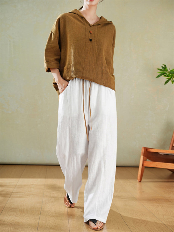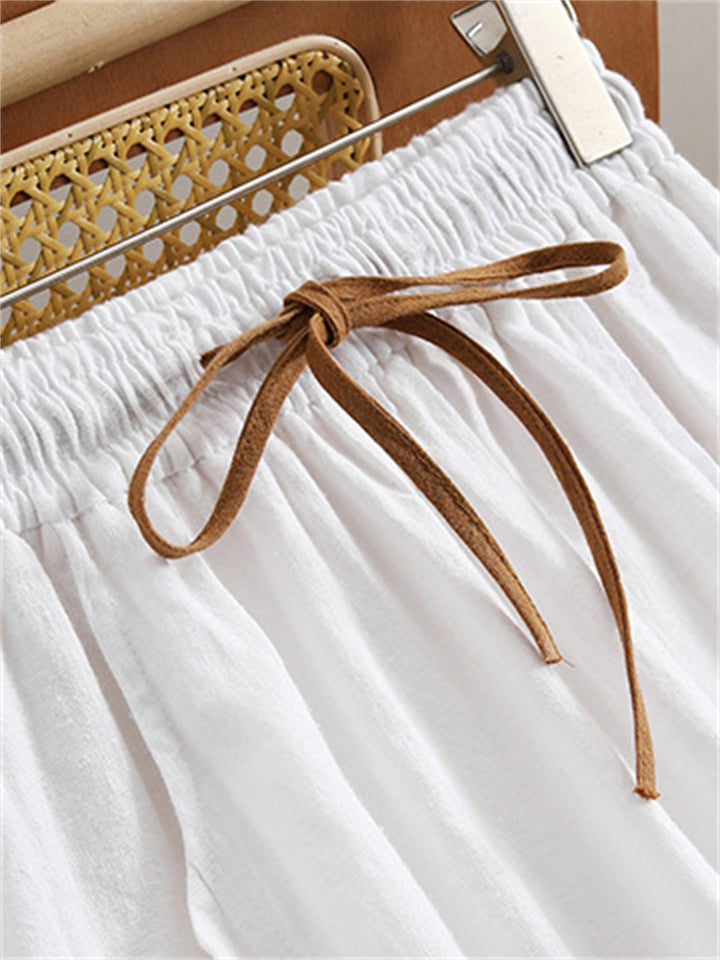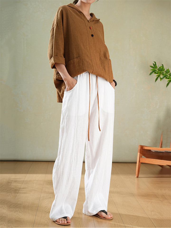 Women's Summer Cool Solid Color Elastic Waist Drawstring Pants