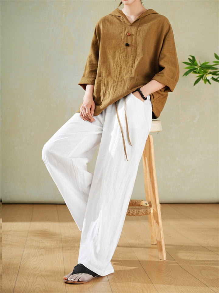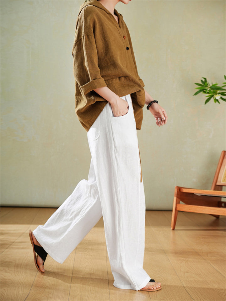 Women's Simple Comfy Ethnic Style Embroidered Wide Leg Pants