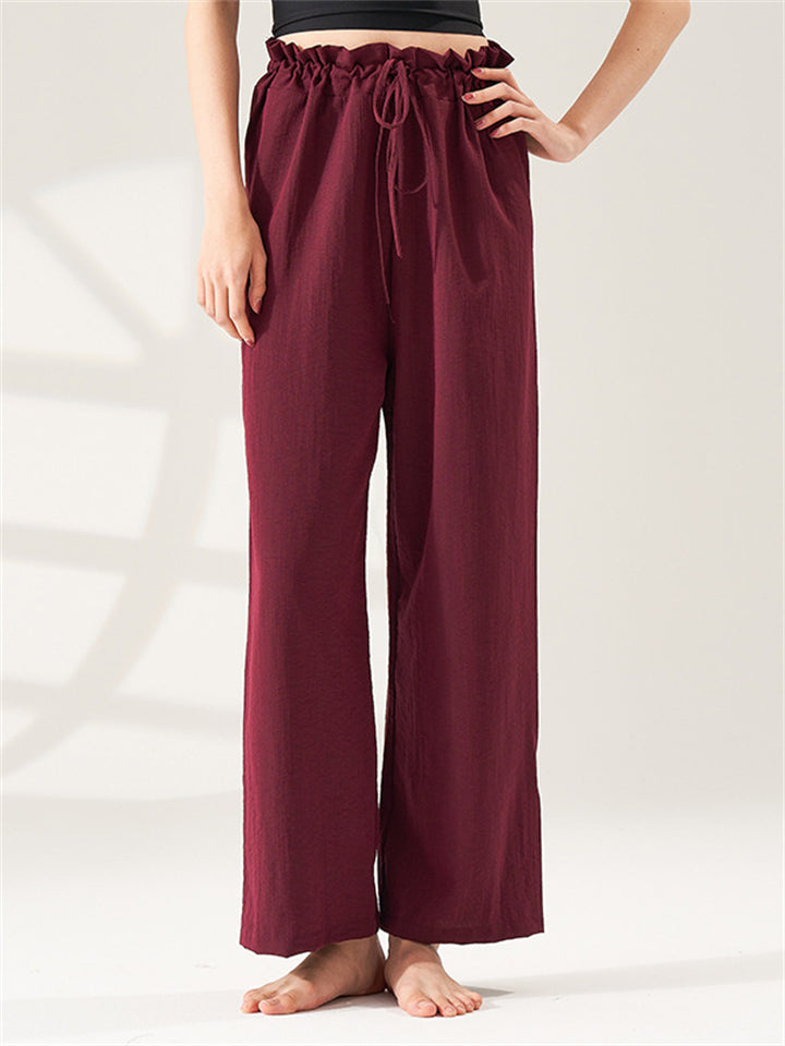 Women's Summer Cool Solid Color Elastic Waist Drawstring Pants
