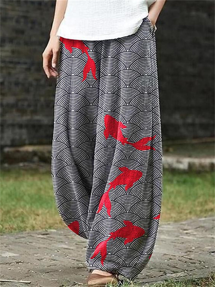 Women's Retro Ethnic Style Printed Loose High Waist Wide Leg Pants