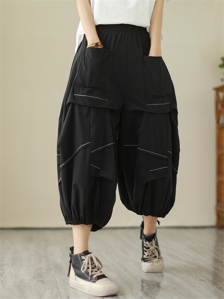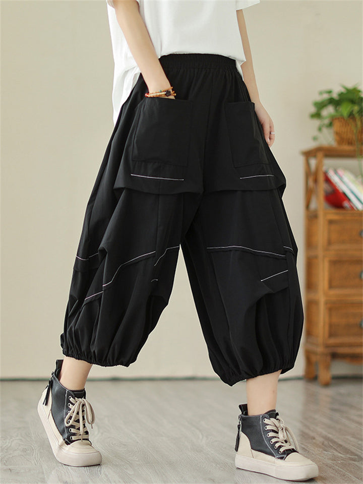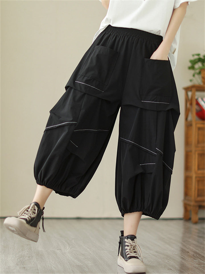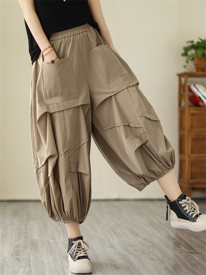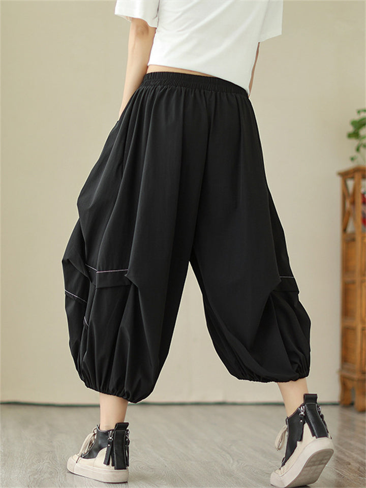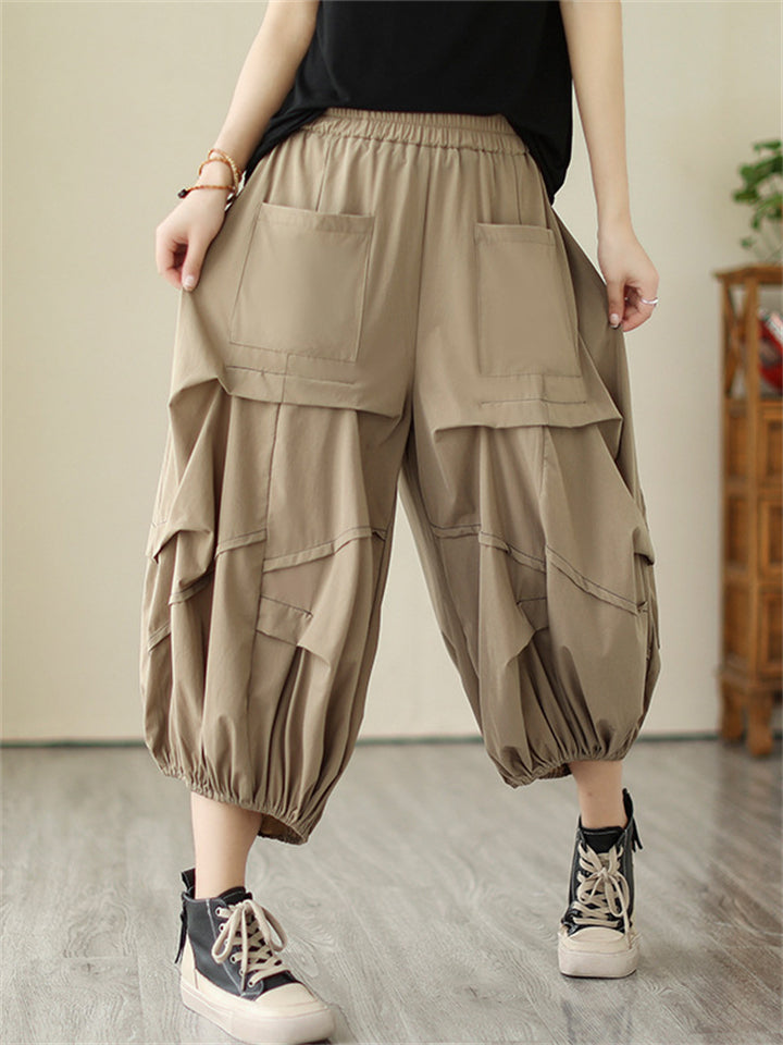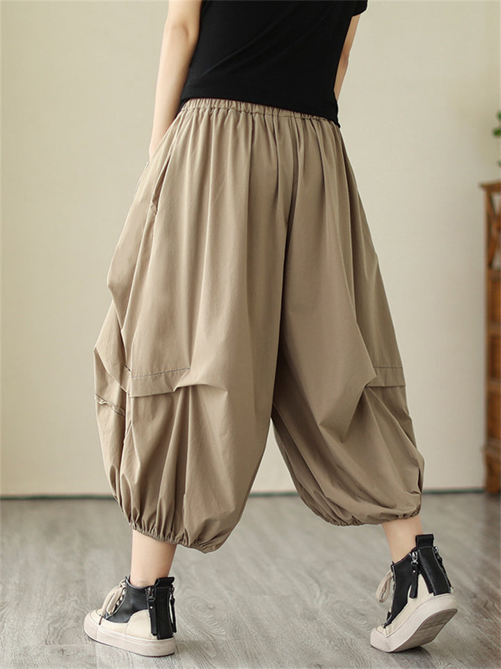 Summer Extra Loose Pleated Cropped Lantern Pants for Women