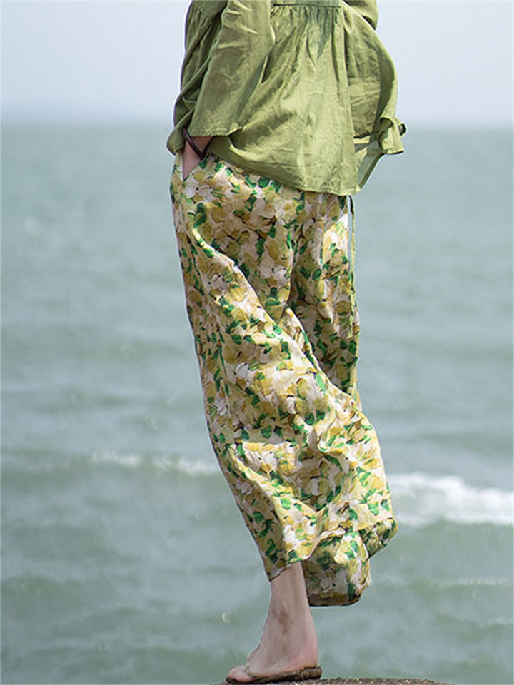 Women's Simple Ethnic Style Printed Comfy Wide Leg Pants