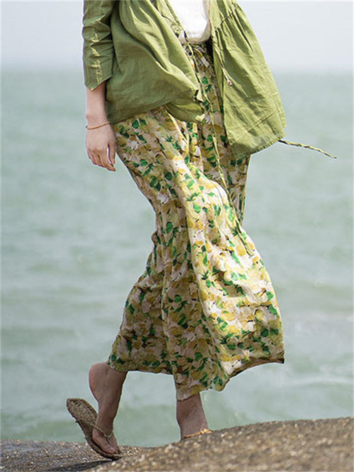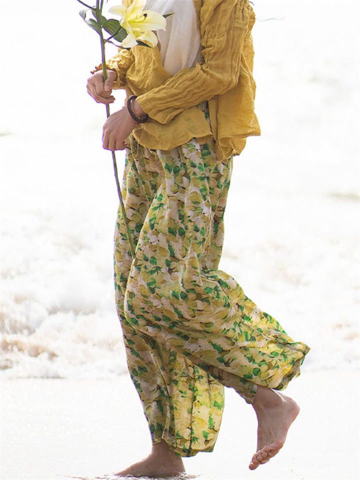 Women's Retro Ethnic Style Printed Loose High Waist Wide Leg Pants