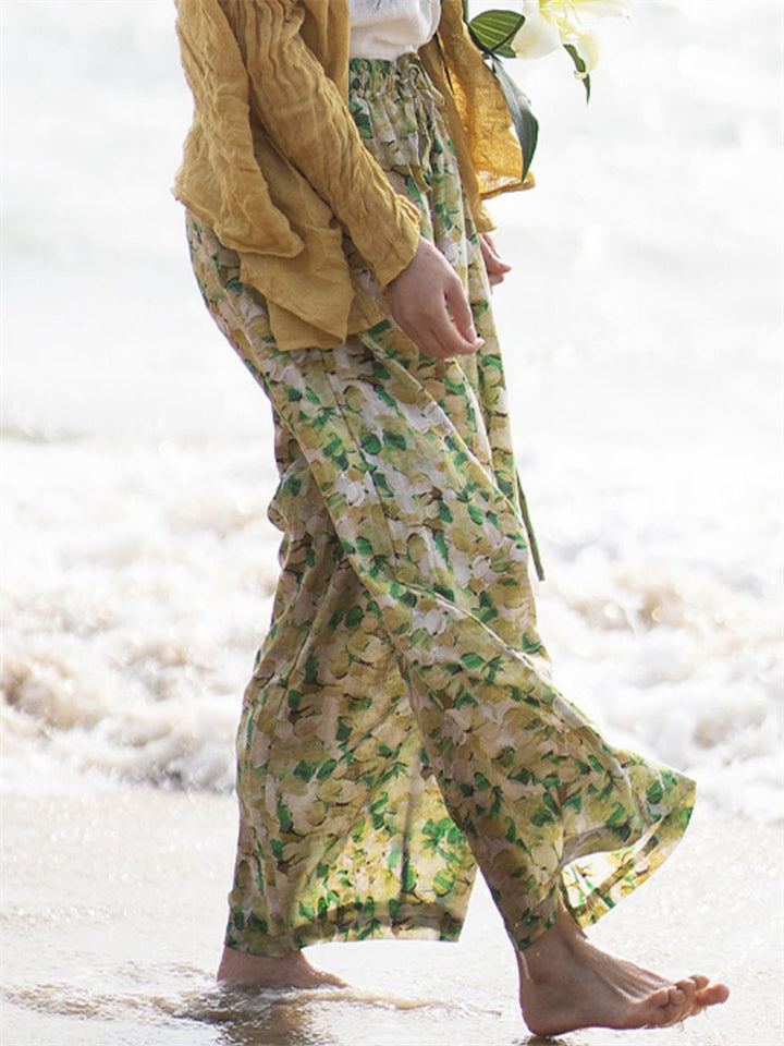 Summer Floral Print Oversized Wide Leg Pants for Women
