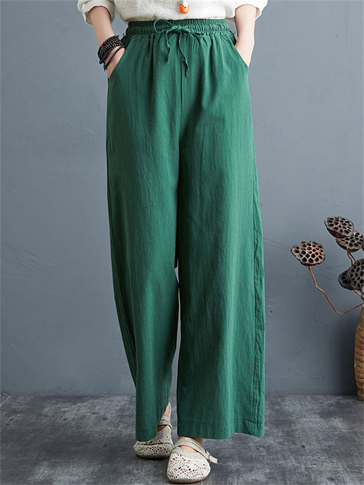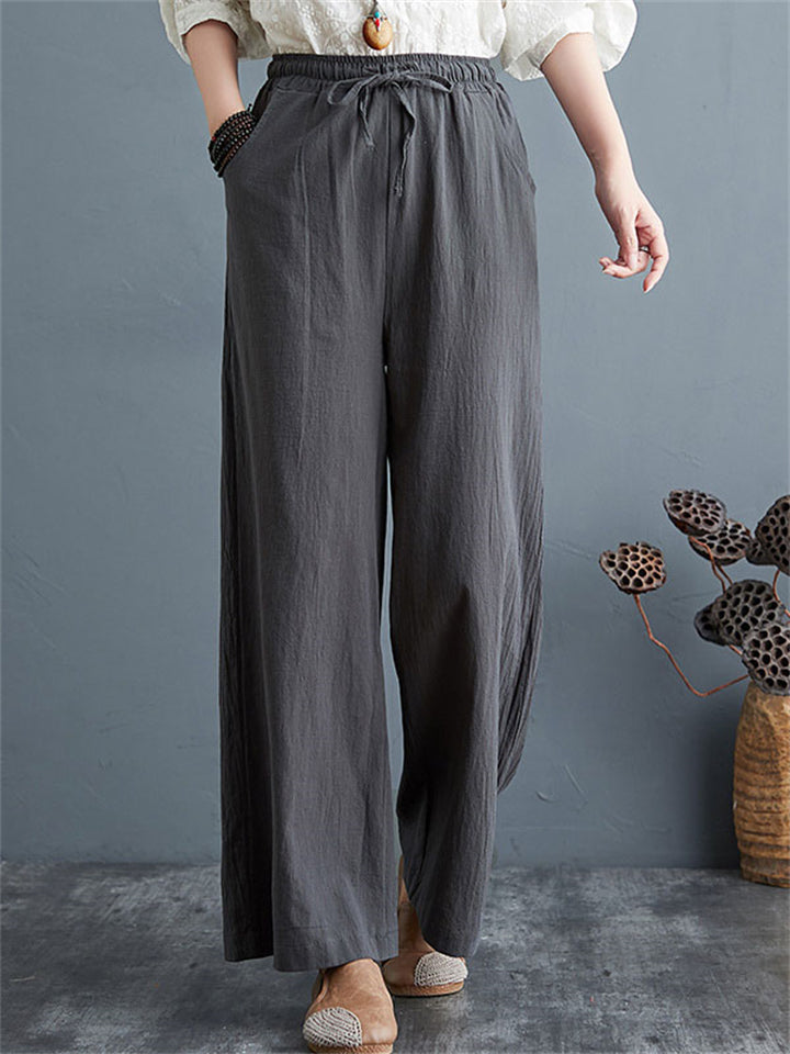 Women's Summer Cool Solid Color Elastic Waist Drawstring Pants