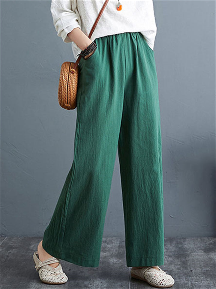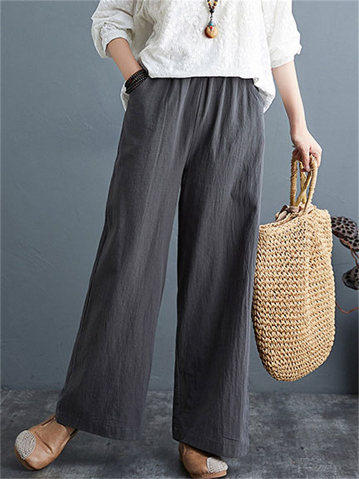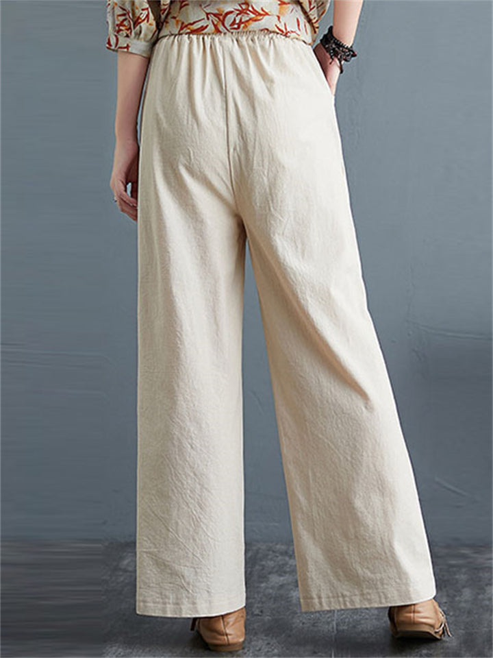 Women's Simple Comfy Ethnic Style Embroidered Wide Leg Pants