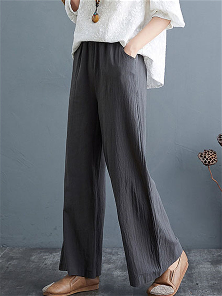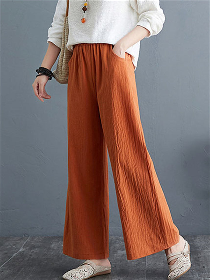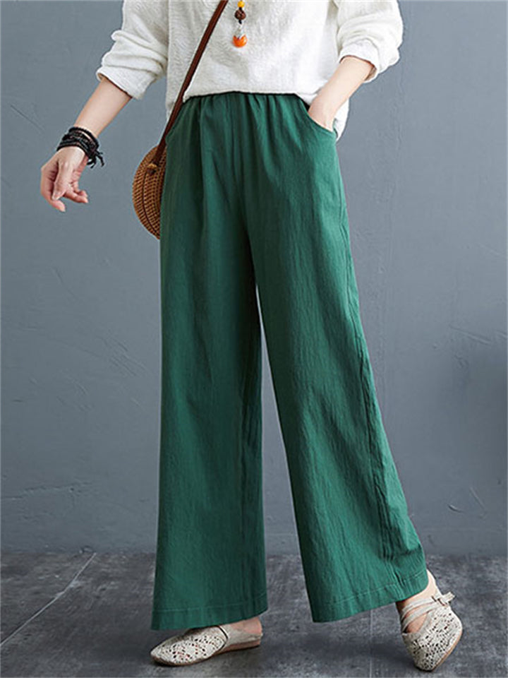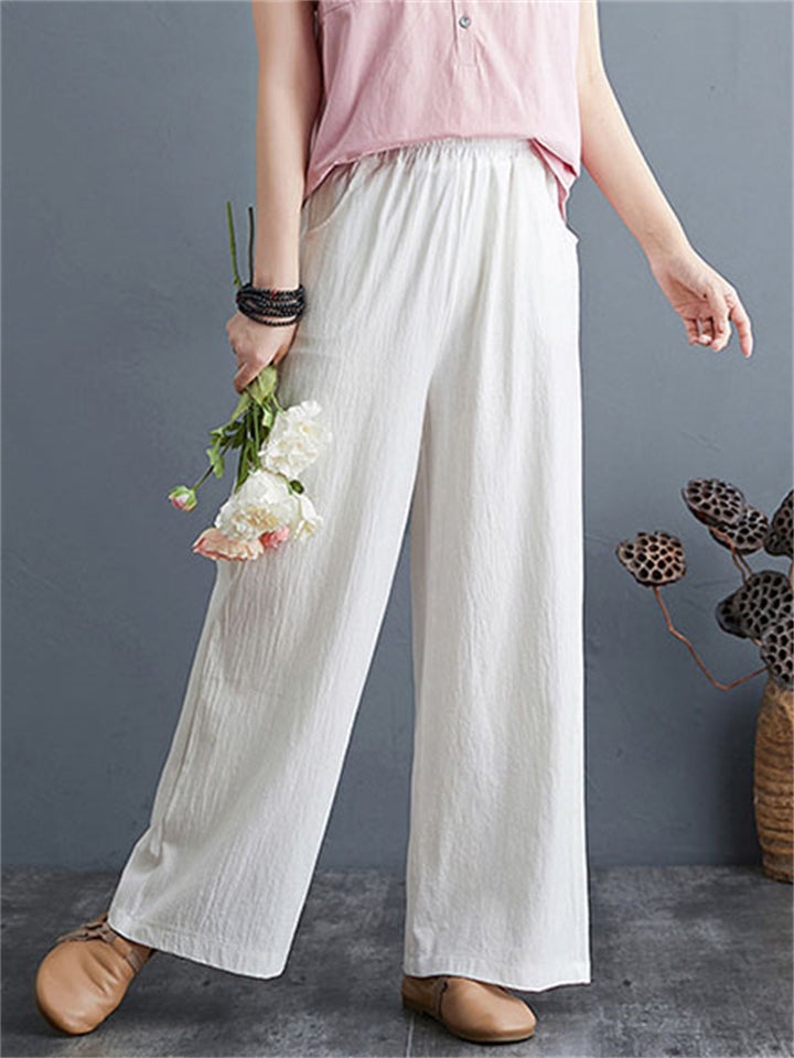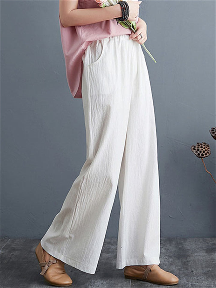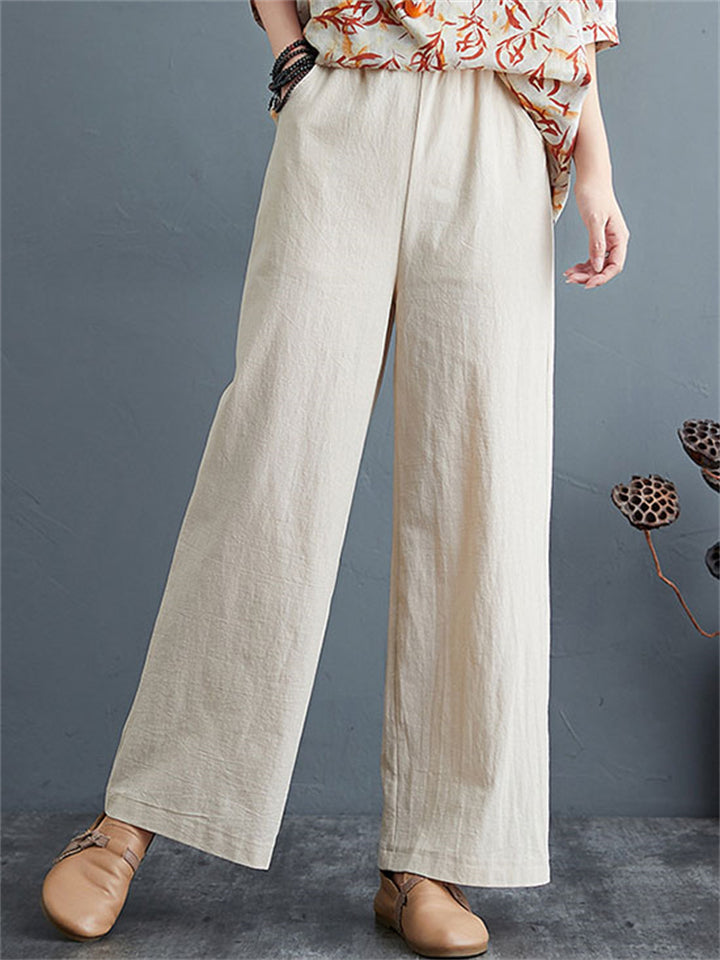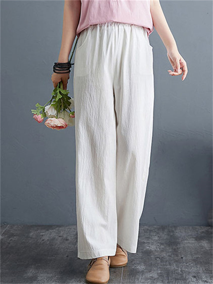 Summer Linen Blend High Rise Straight-Leg Pants for Women