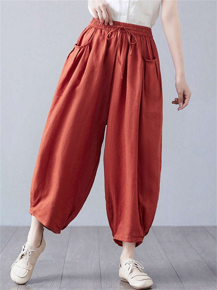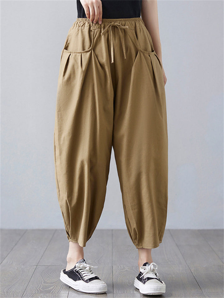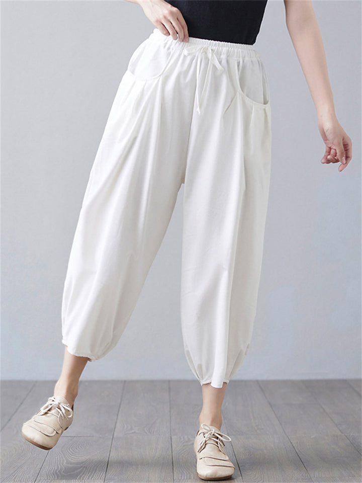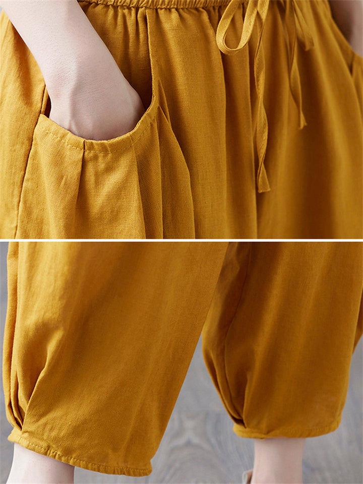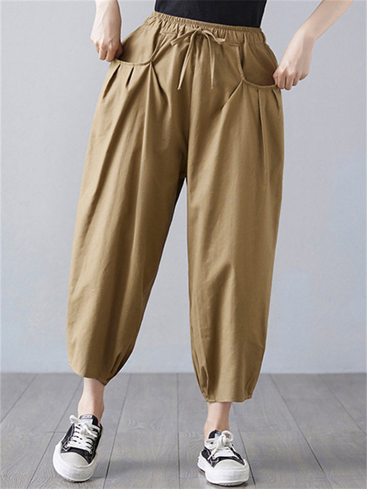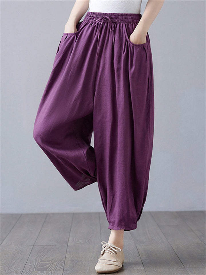 Women's Summer Cool Solid Color Elastic Waist Drawstring Pants