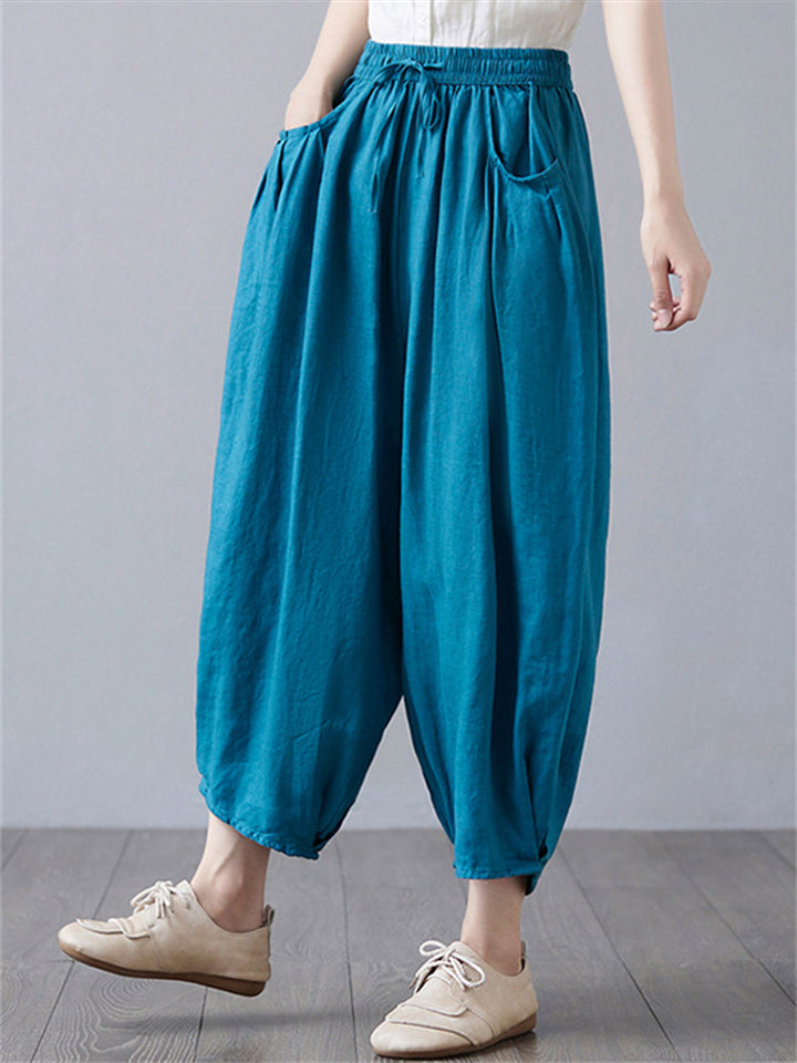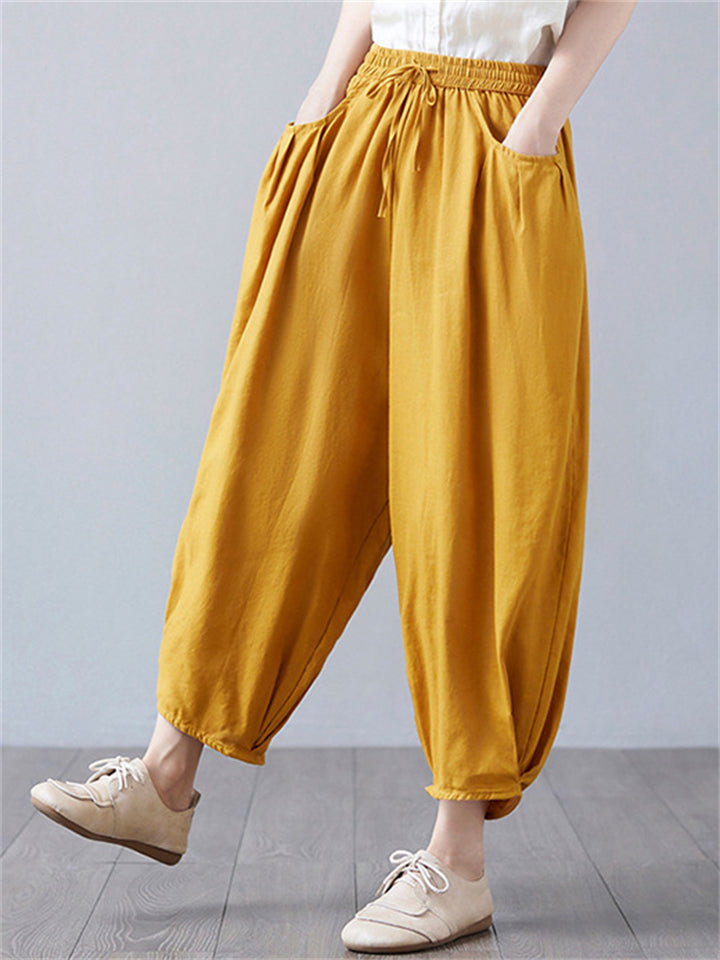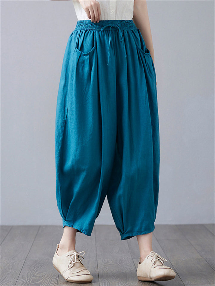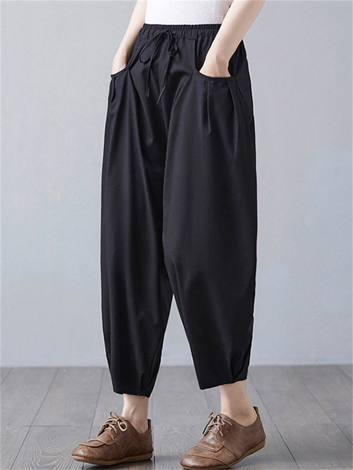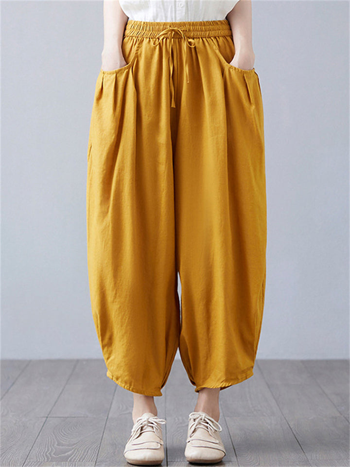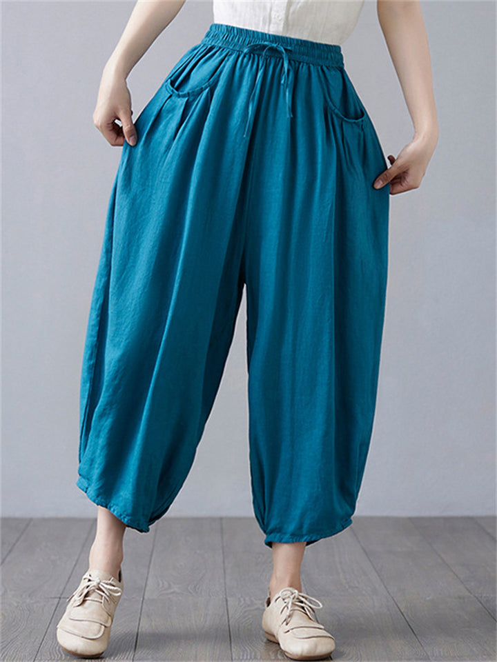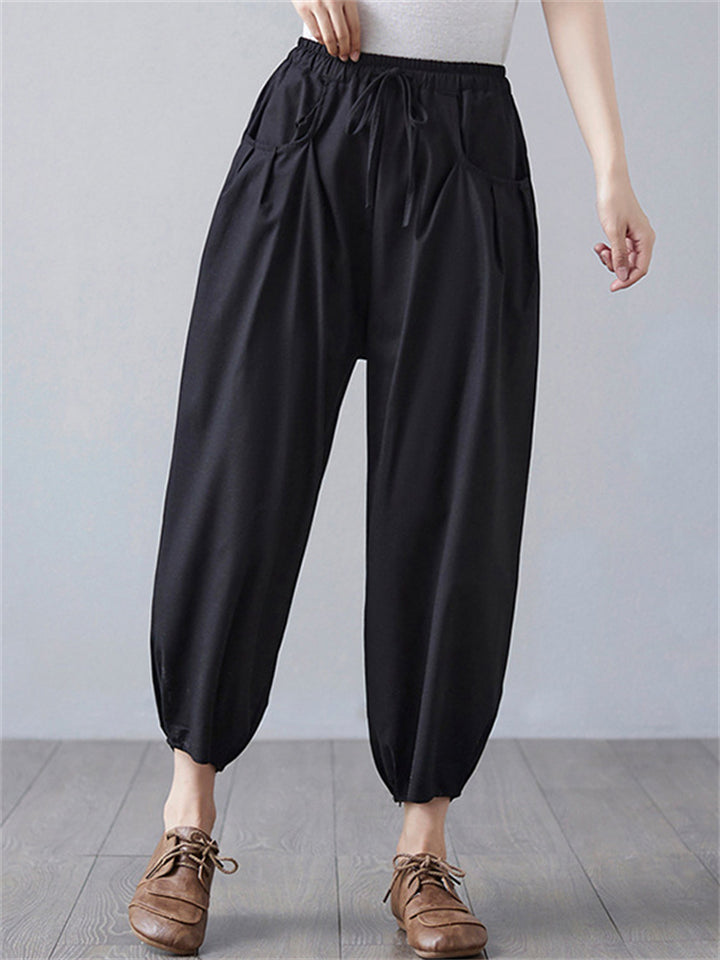 Women's Summer Cool Solid Color Elastic Waist Drawstring Pants