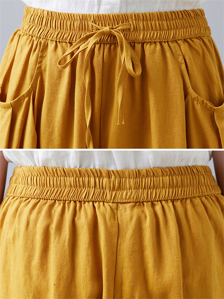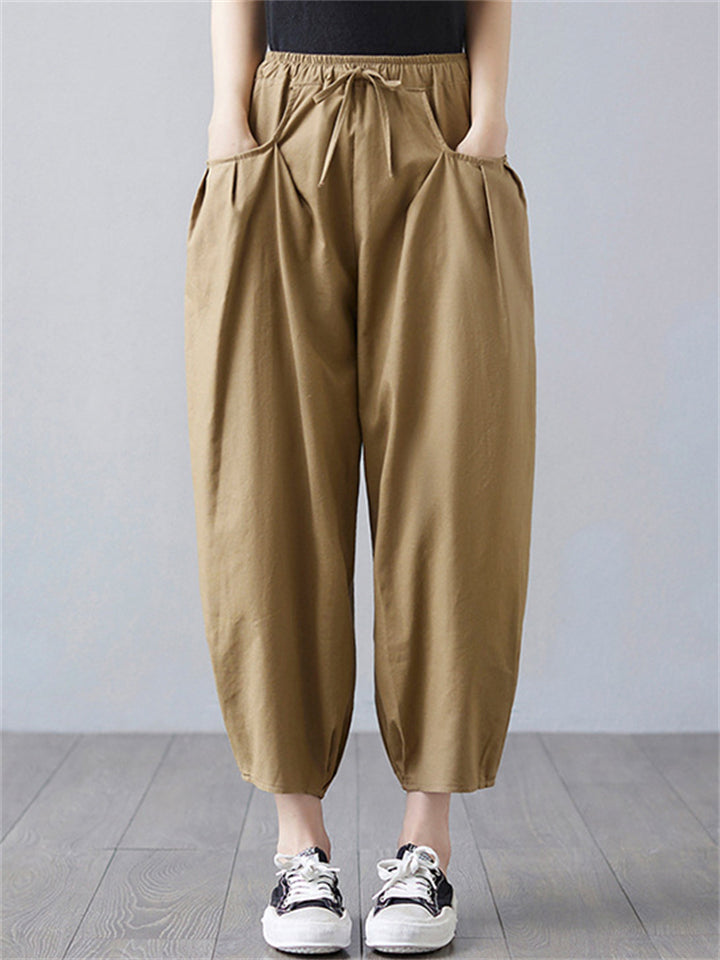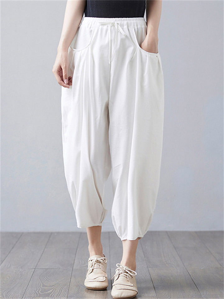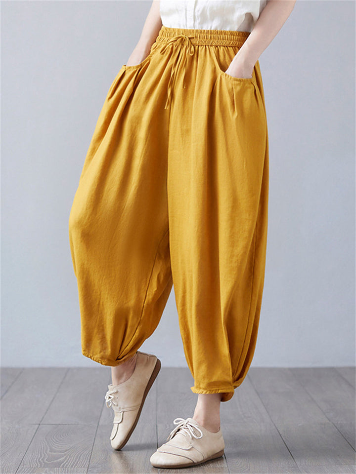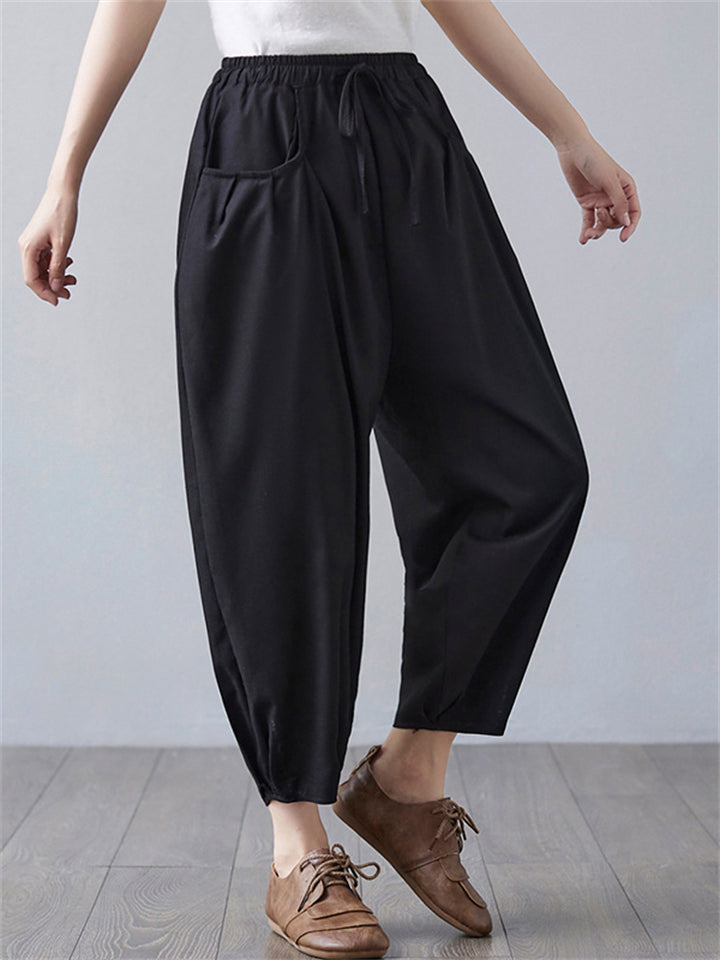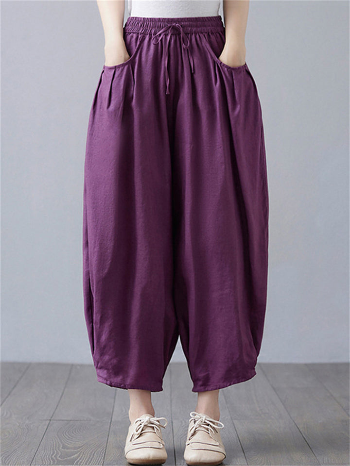 Women's Summer Cool Solid Color Elastic Waist Drawstring Pants