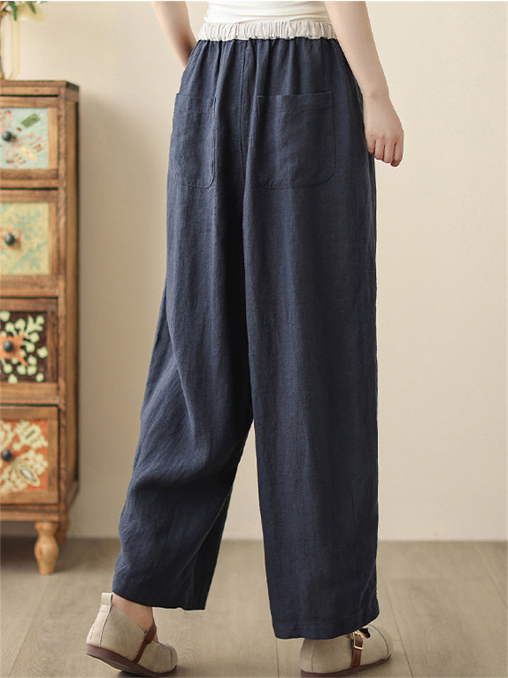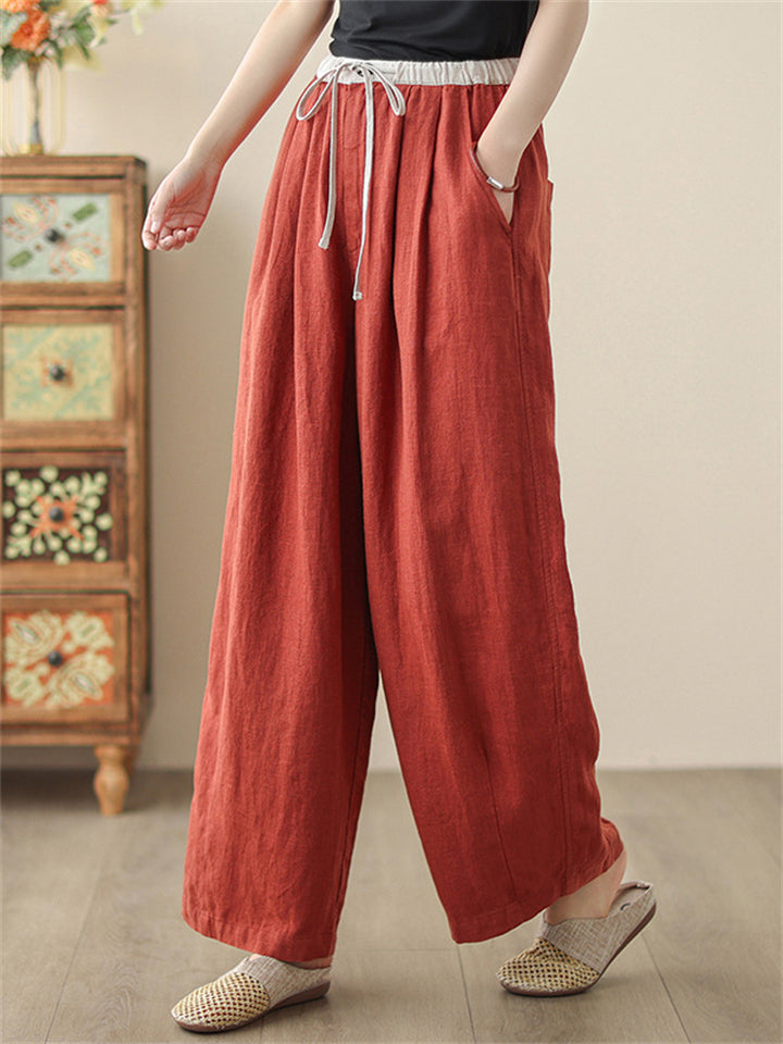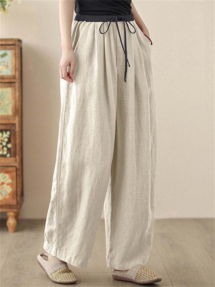 Women's Summer Cool Solid Color Elastic Waist Drawstring Pants