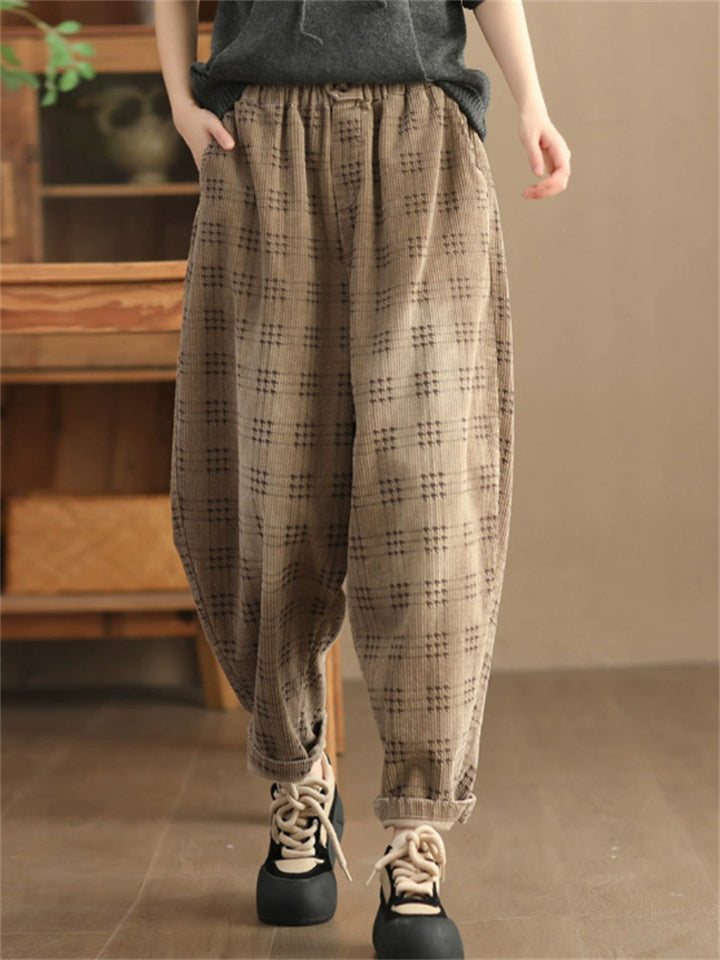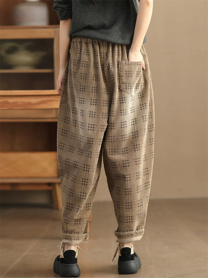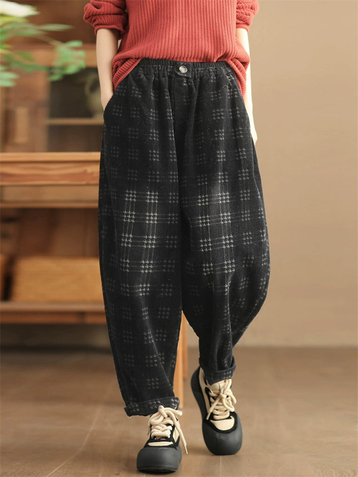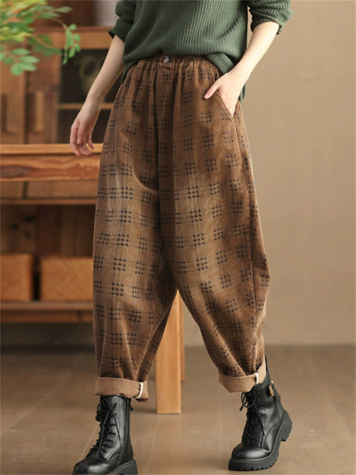 Women's Autumn Retro Plaid Loose Corduroy Long Pants