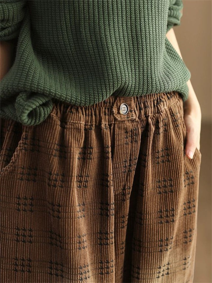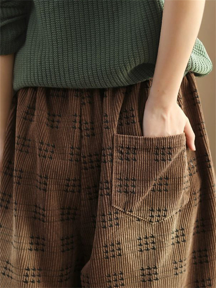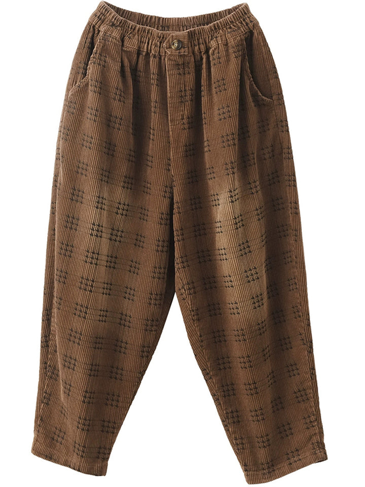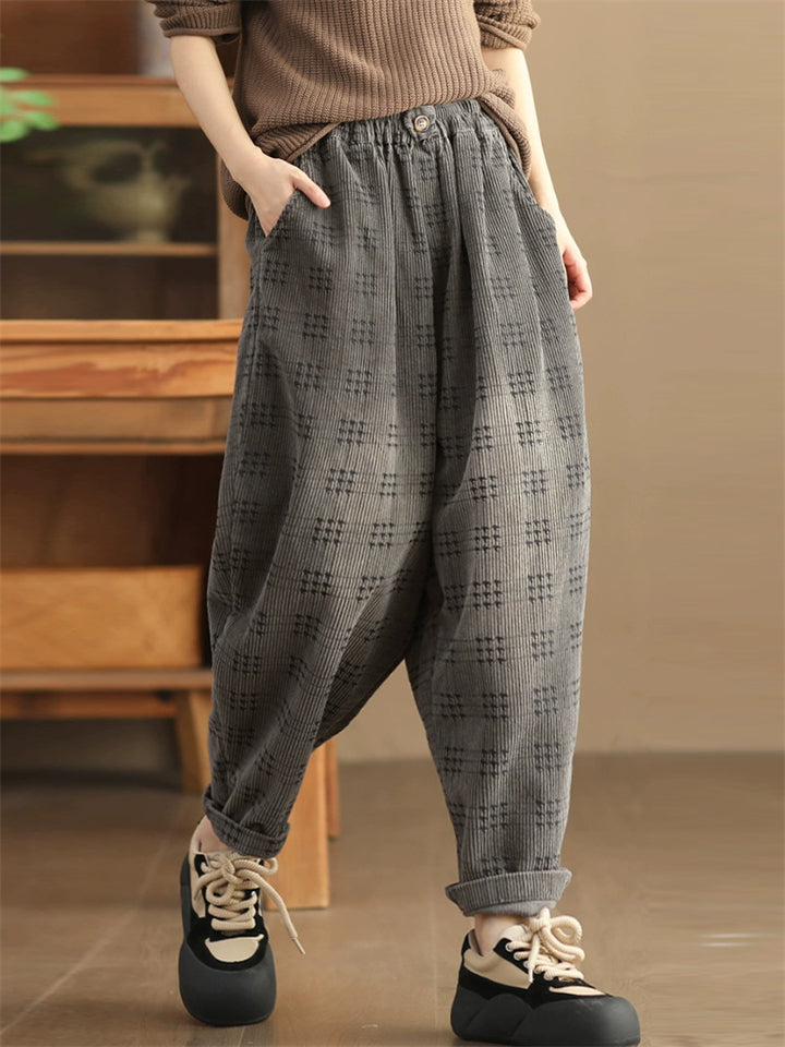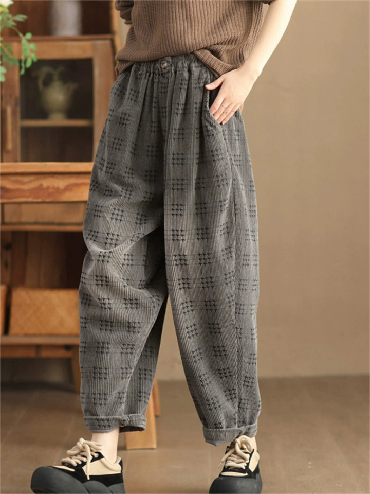 Women's Autumn Retro Plaid Loose Corduroy Long Pants