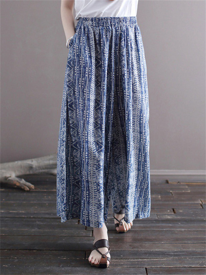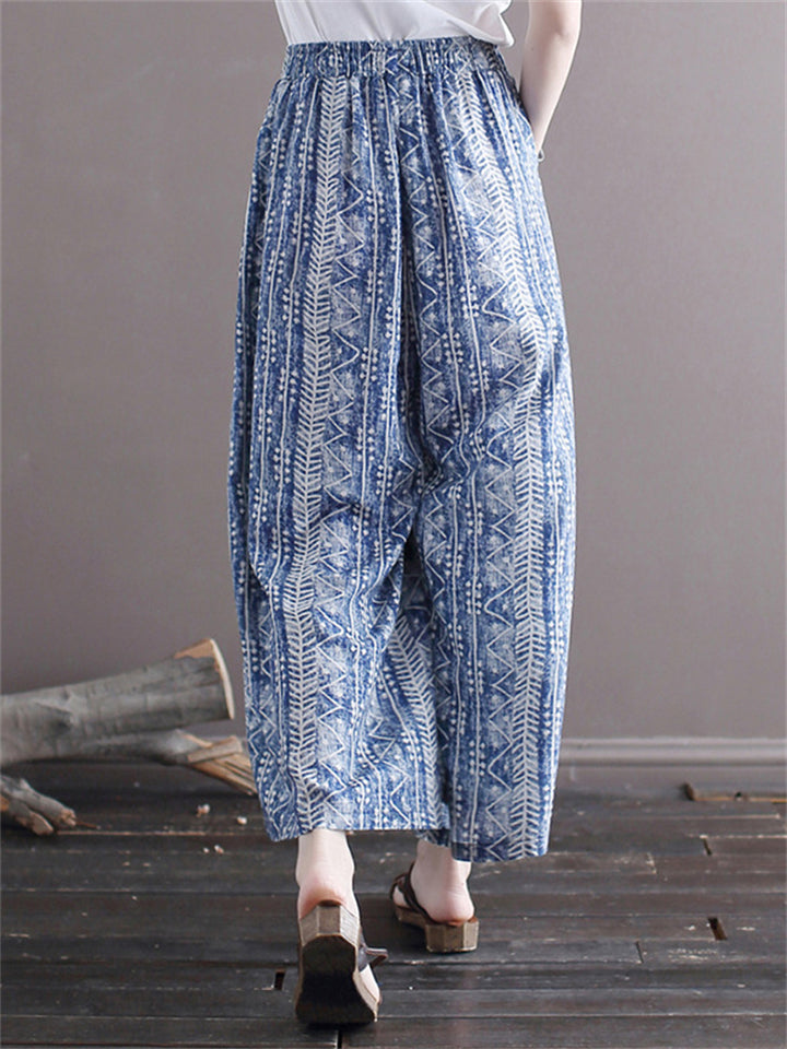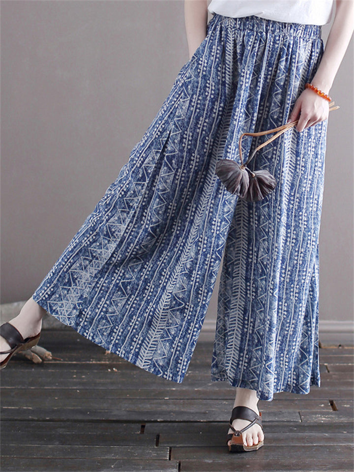 Women's Simple Ethnic Style Printed Comfy Wide Leg Pants
