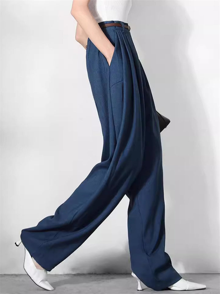 Women's Casual Blue Relaxed High-Waist Office Pants