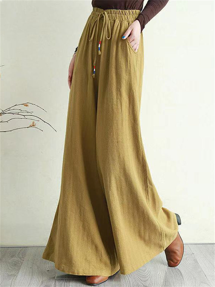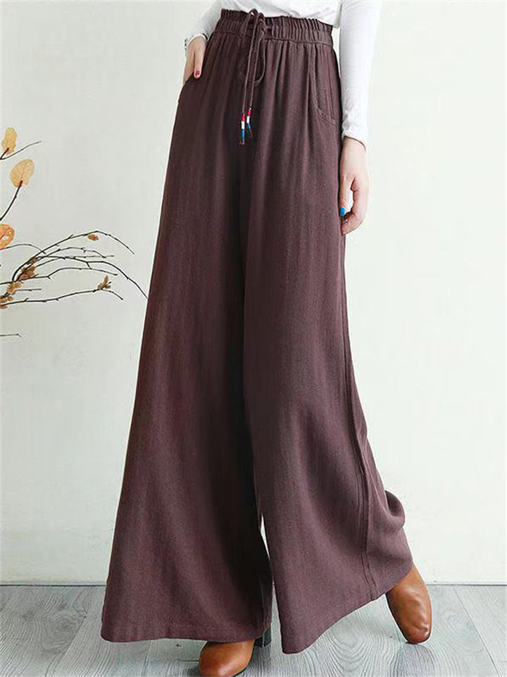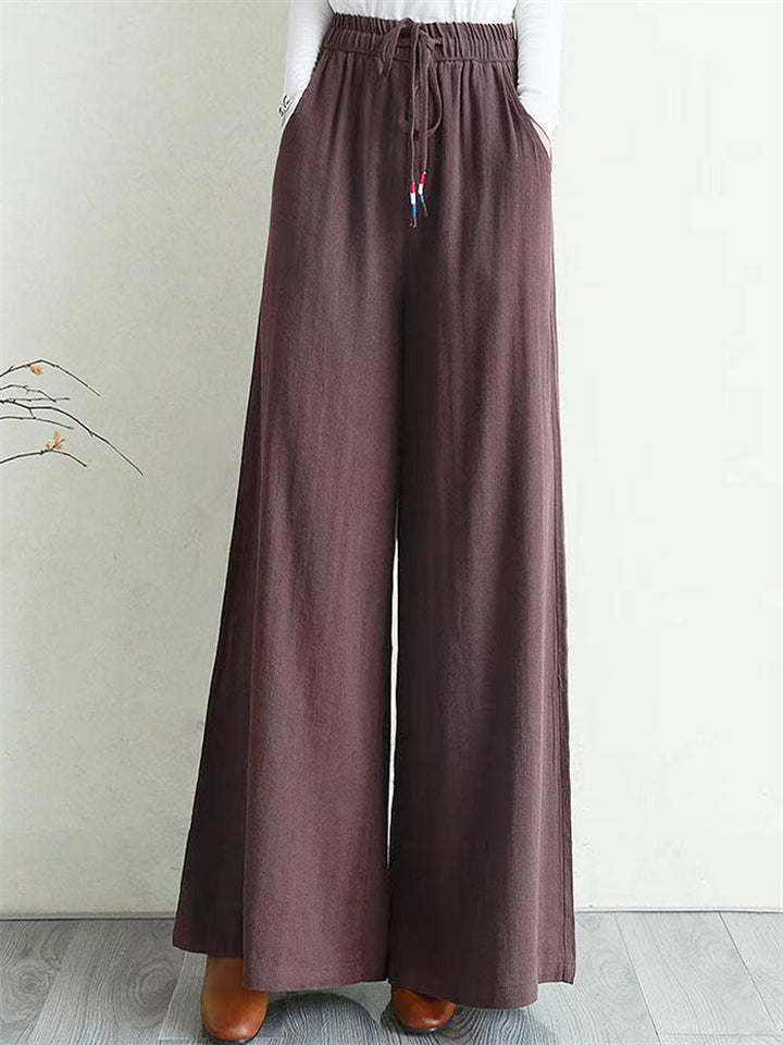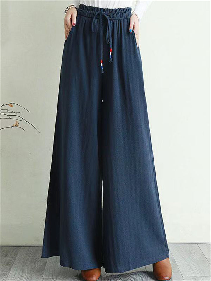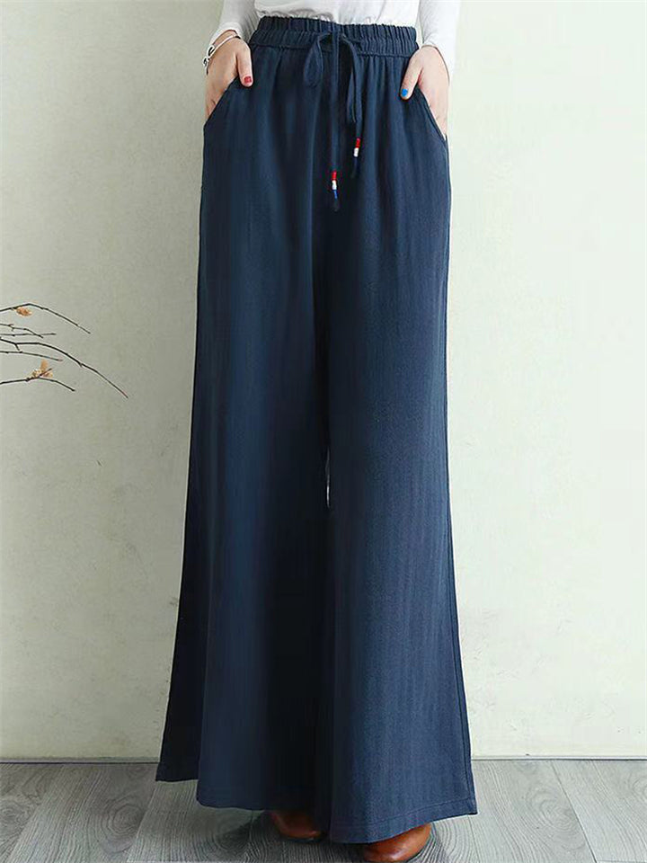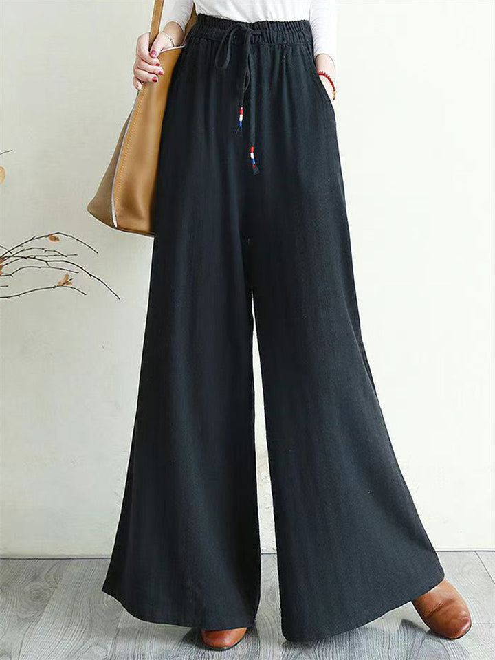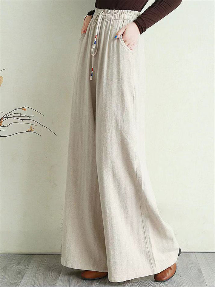 Women's Casual Oversized Cotton Linen Wide Leg Pants