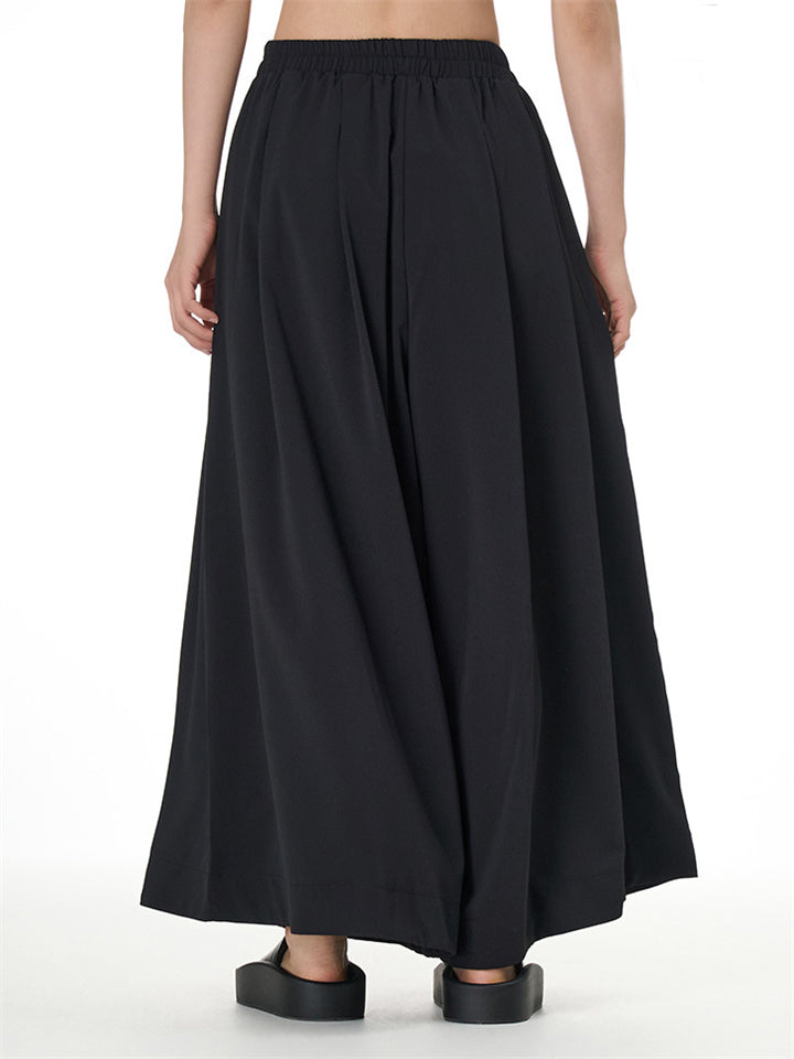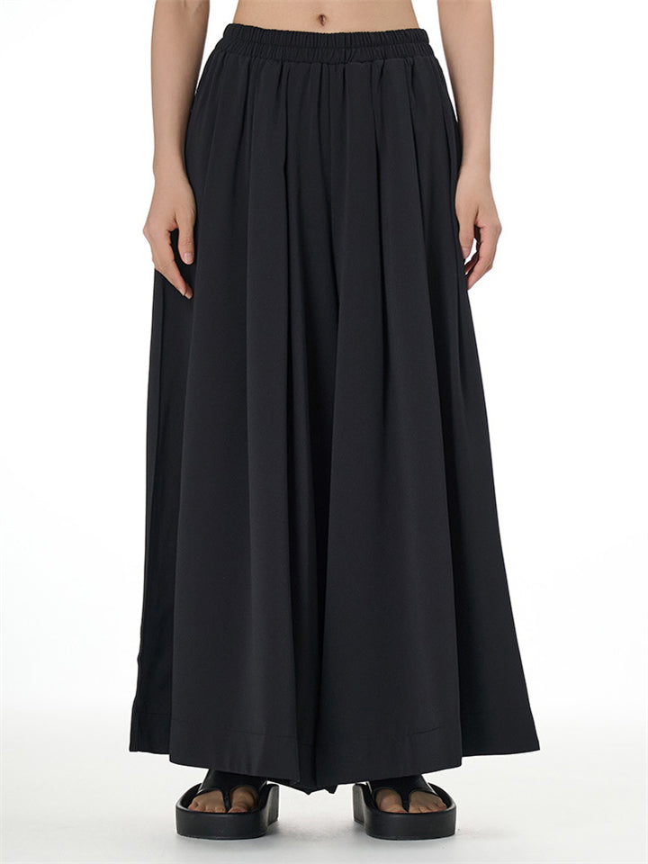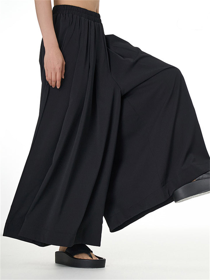 Women's Ethnic Style Embroidery Solid Color Elastic Waist Wide Leg Pants