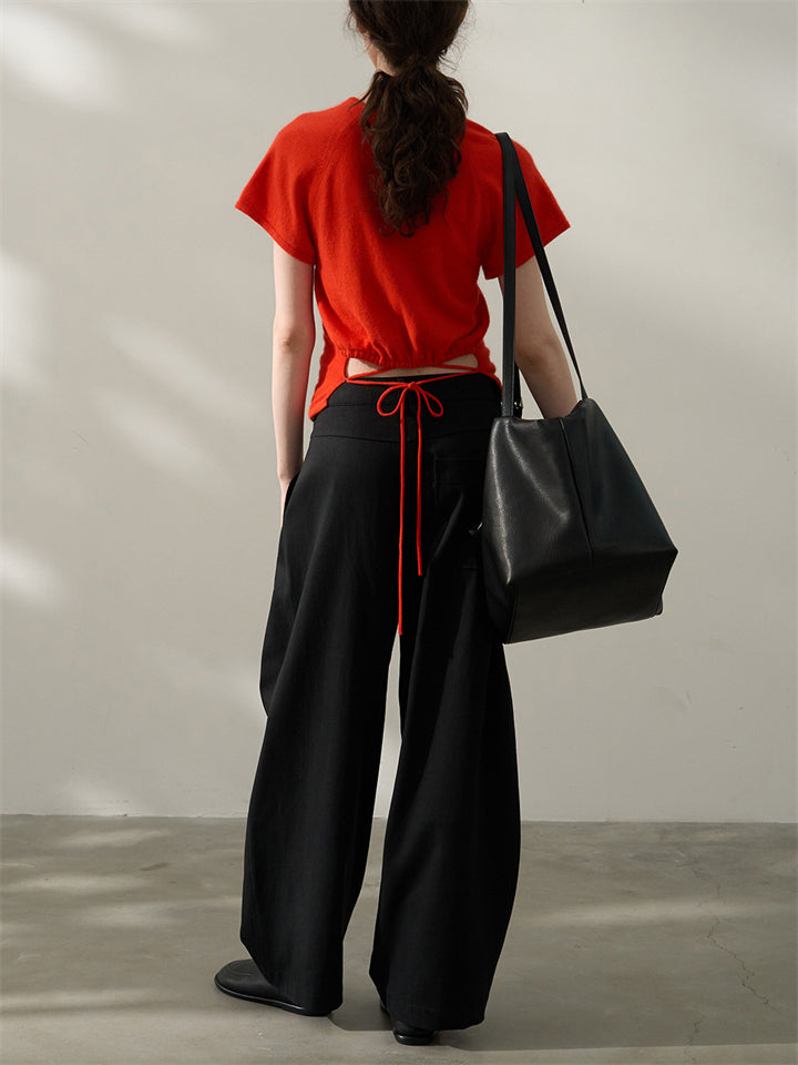 Women's Summer Cool Solid Color Elastic Waist Drawstring Pants