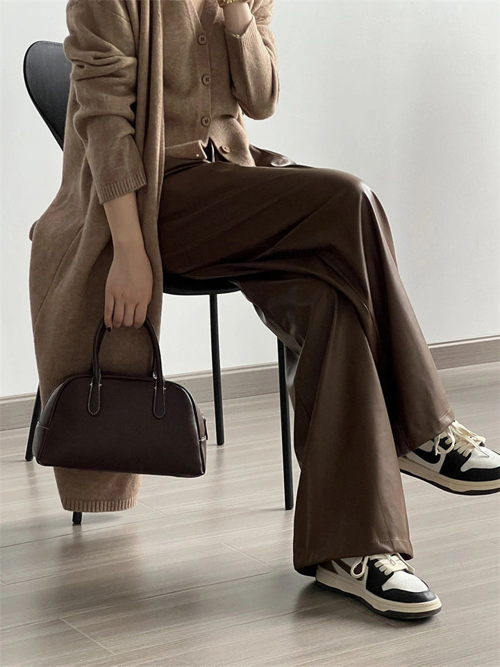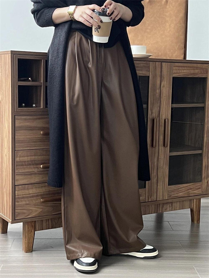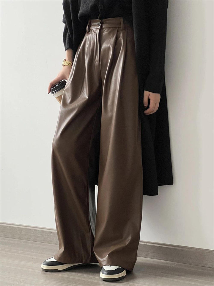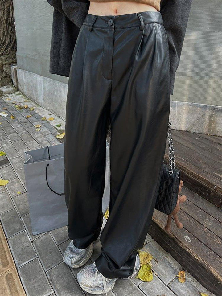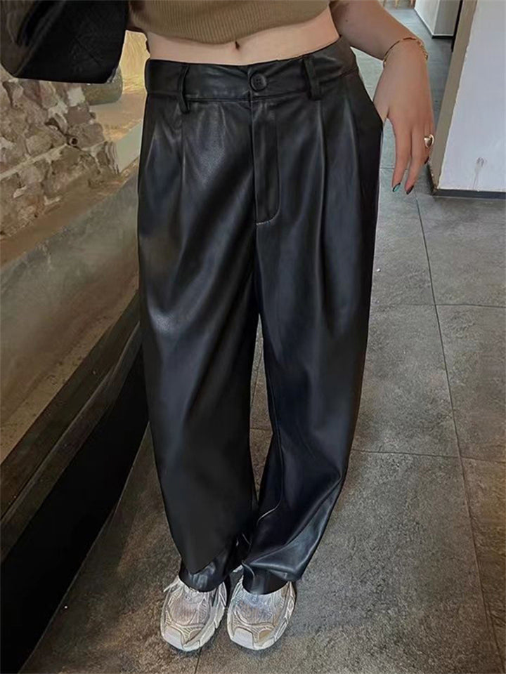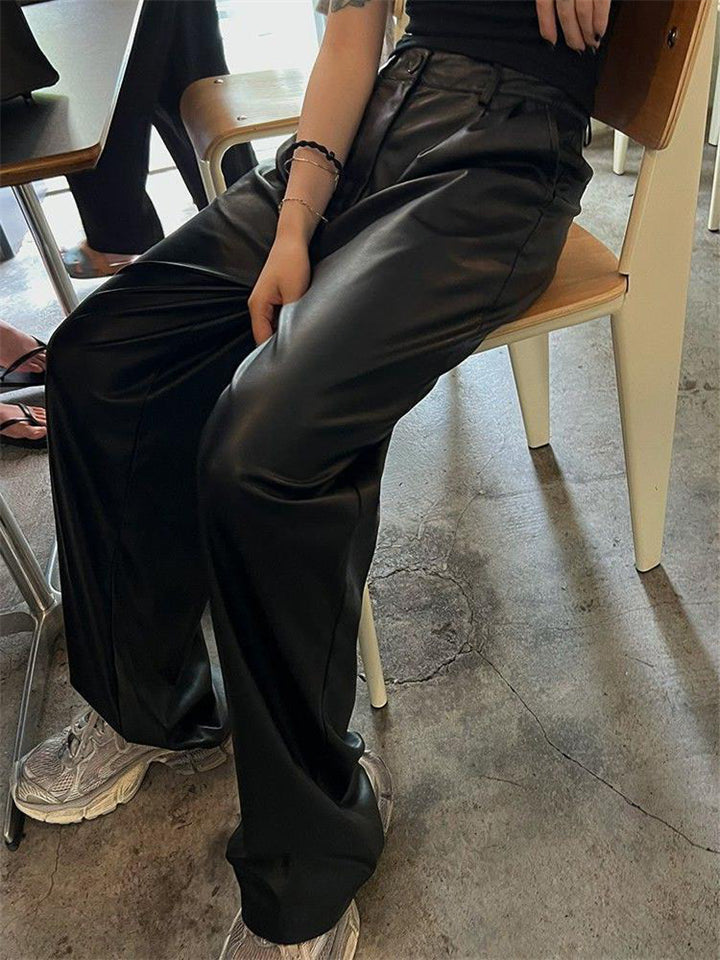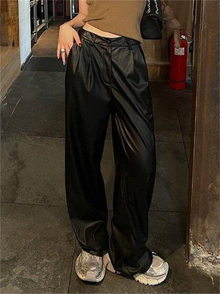 Women's Cool Semi-elastic Floor Length PU Leather Trousers