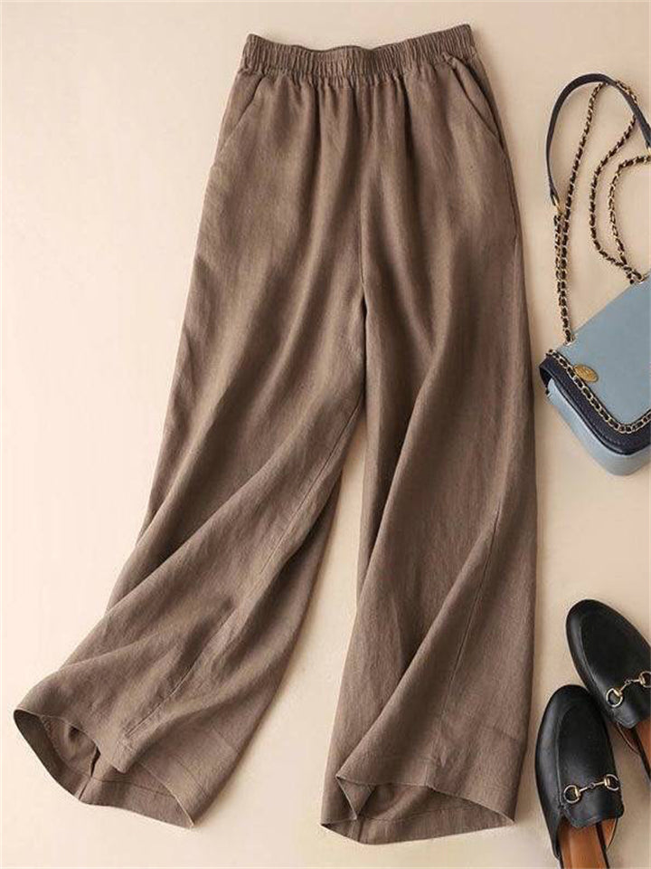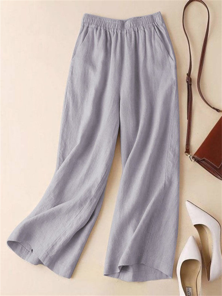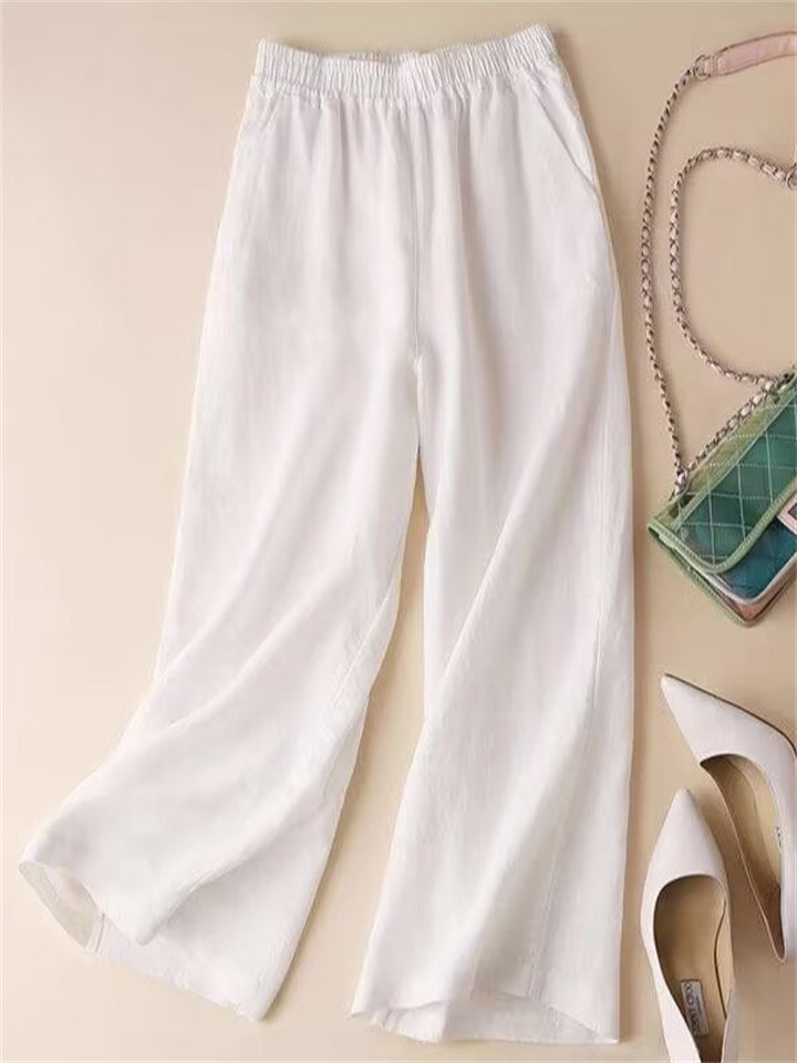 Women's Summer Cool Solid Color Elastic Waist Drawstring Pants