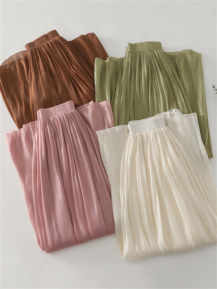 Women's Summer Cool Solid Color Elastic Waist Drawstring Pants