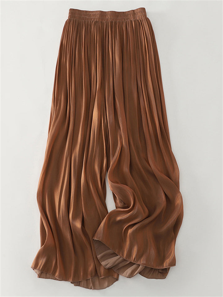 Women's Elastic Waist Solid Color Wide Leg Drape Pants
