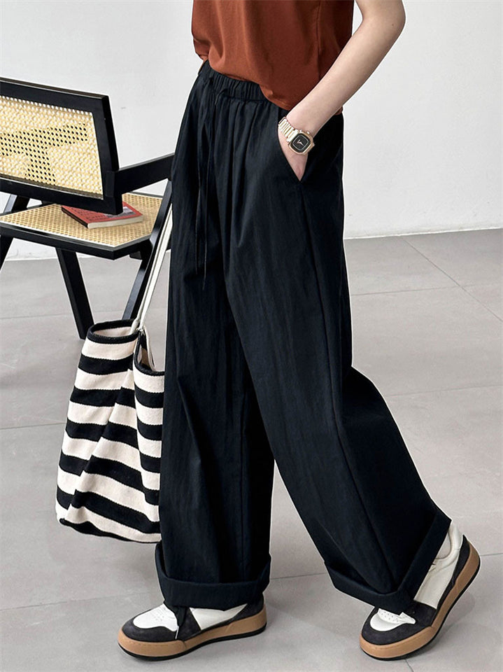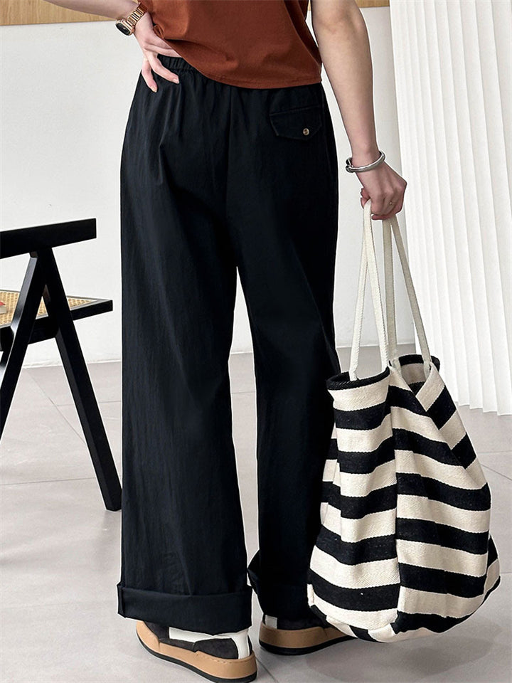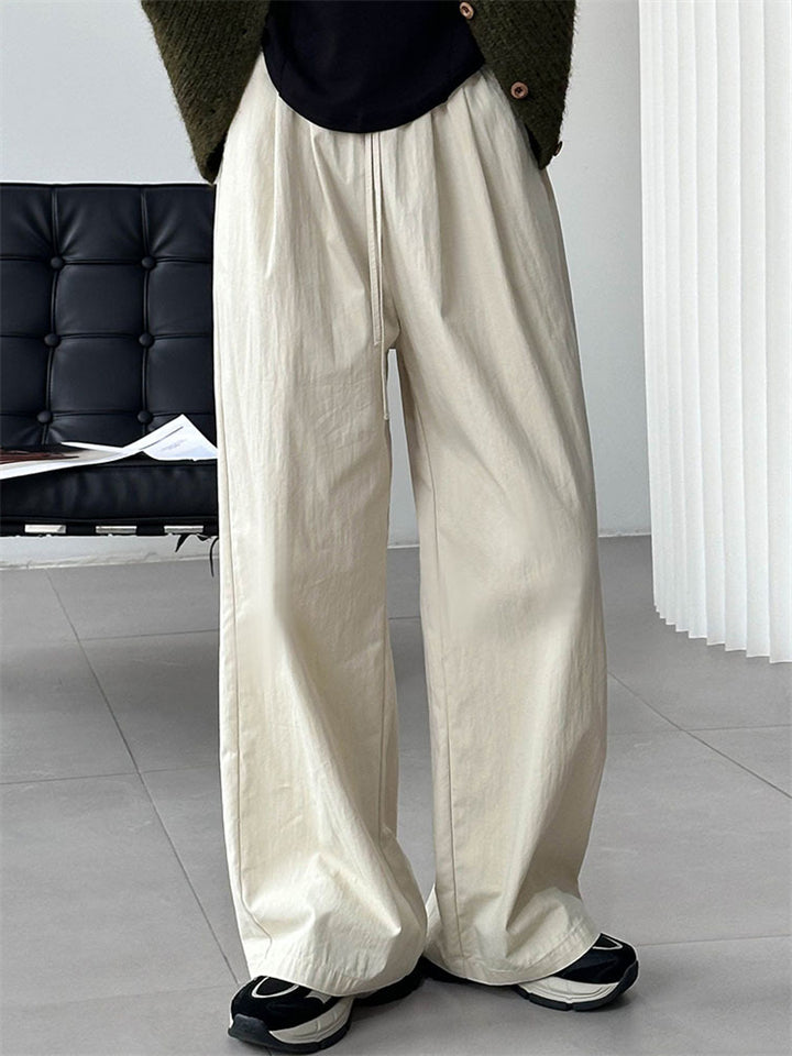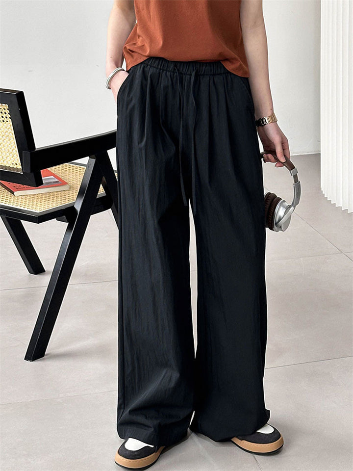 Women's Summer Cool Solid Color Elastic Waist Drawstring Pants