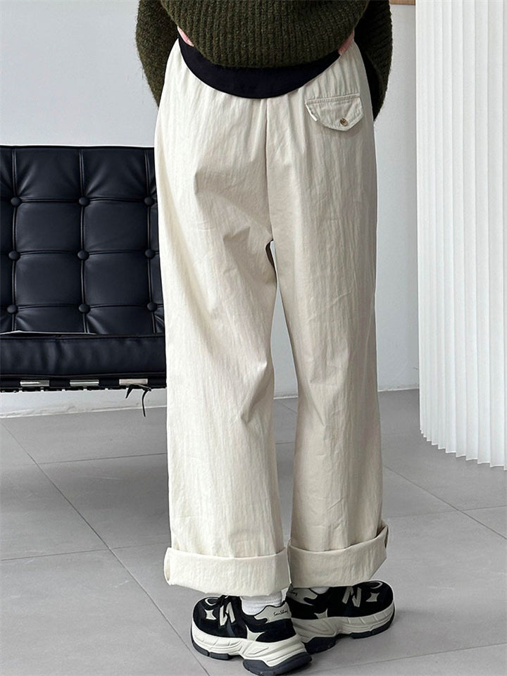 Women's Elastic Waist Wide-Leg Straight Cargo Pants