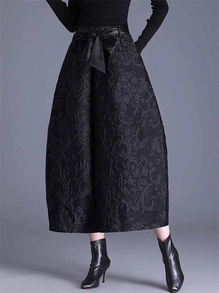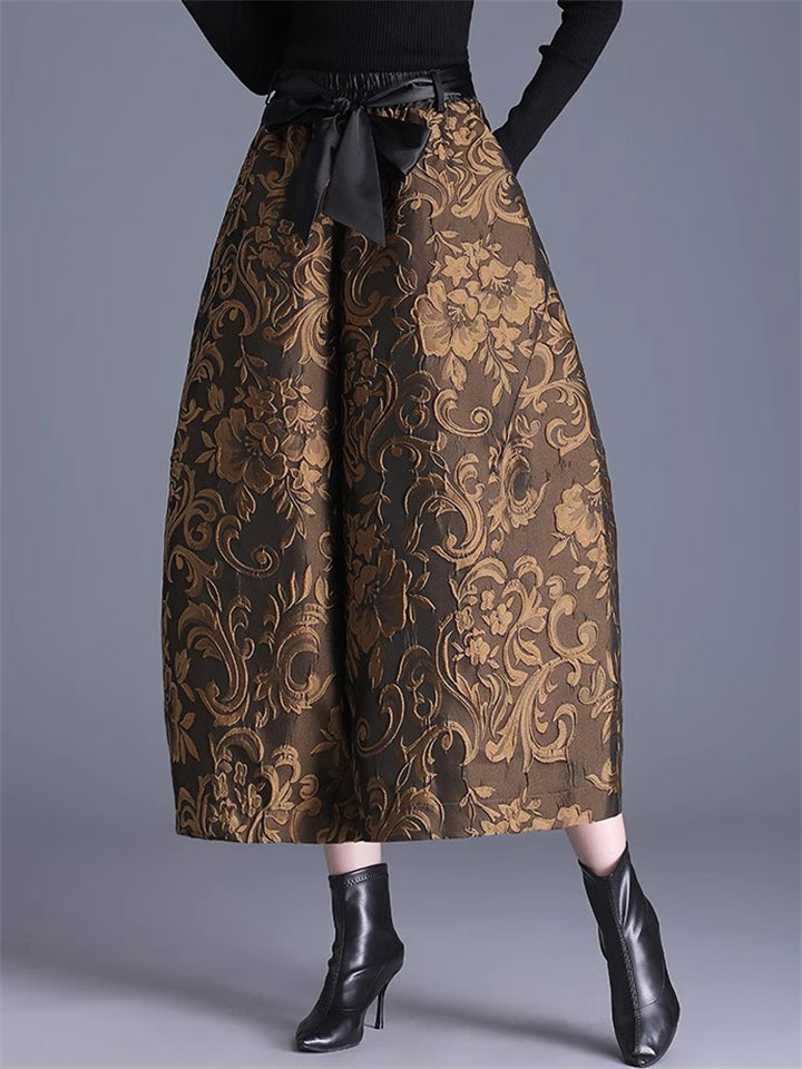 Women's Embossed Jacquard Tie-Waist Wide Leg Cropped Bloomers Pants