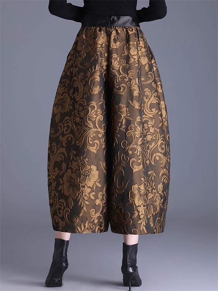 Women's Vintage Ethnic Style Flowers Embroidered Jacquard High Waist Pants