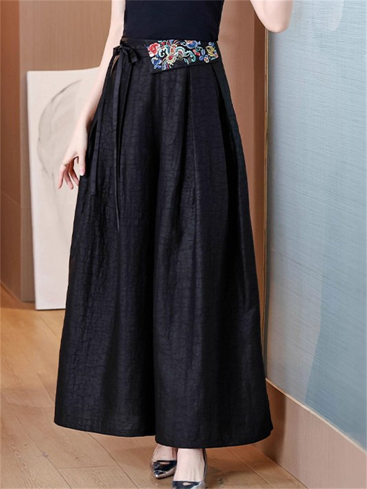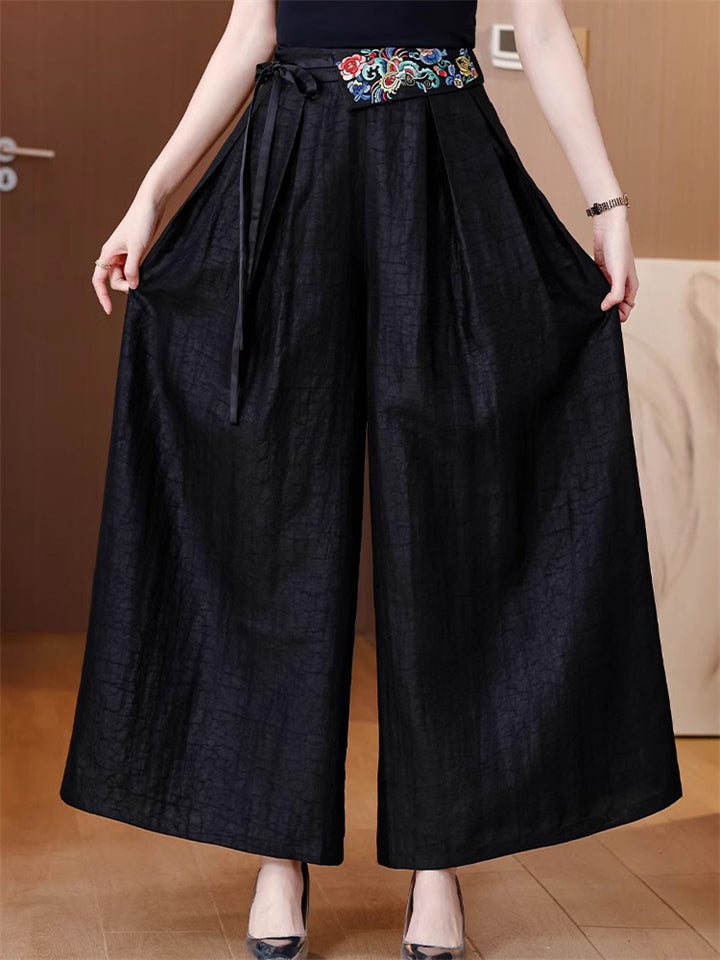 Women's Elegant Ethnic Style Heavy Industry Embroidery Wide Leg Pants