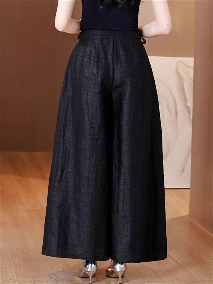 Women's Embossed Jacquard Tie-Waist Wide Leg Cropped Bloomers Pants