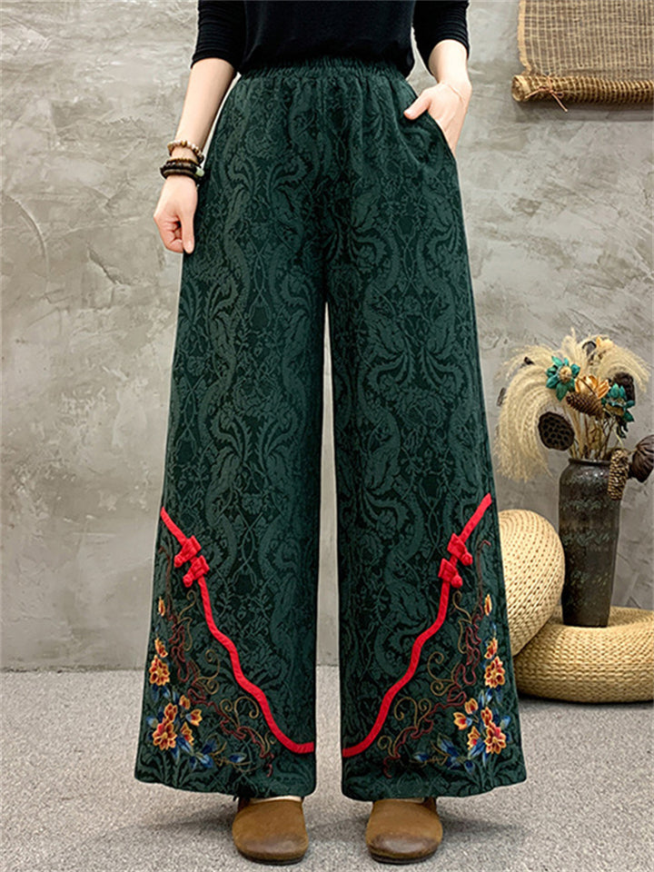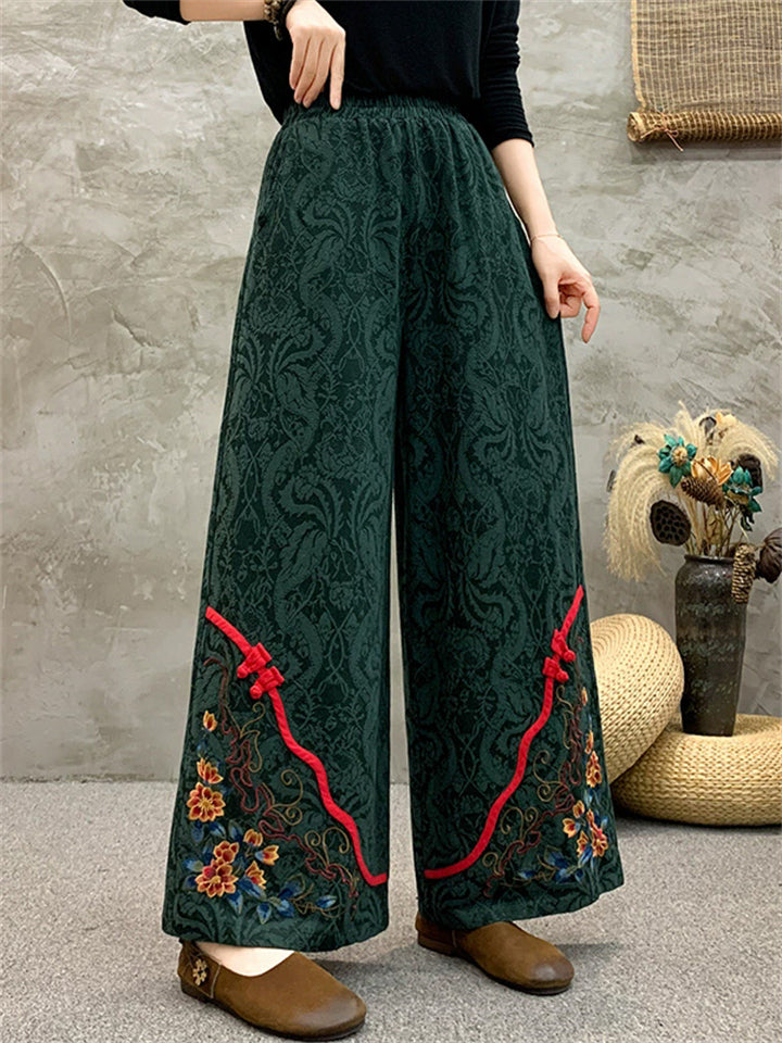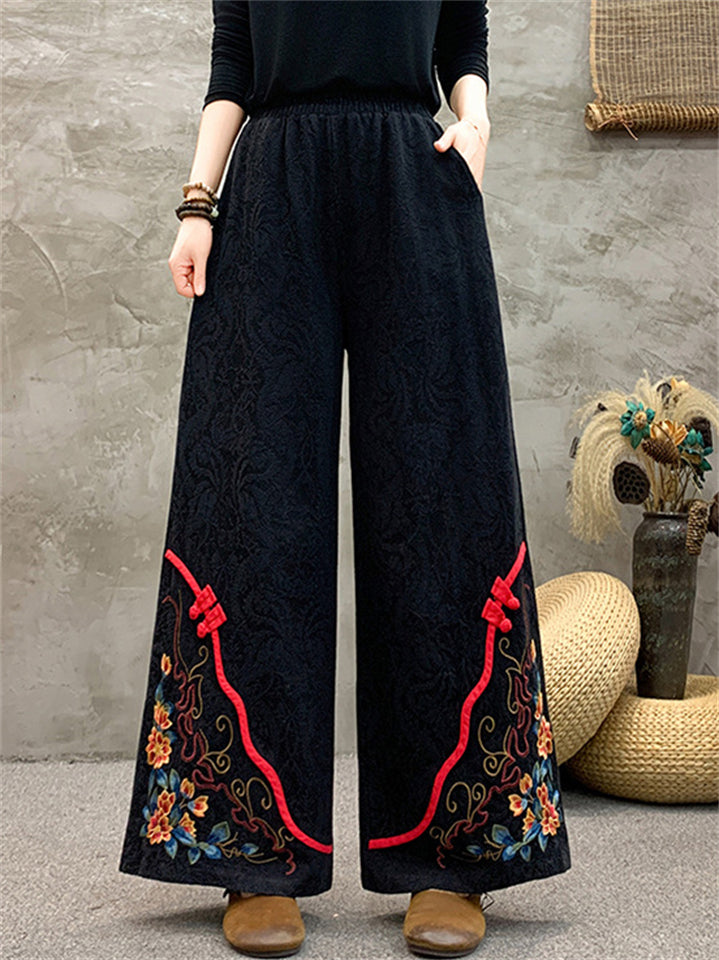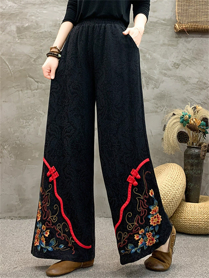 Women's Simple Comfy Ethnic Style Embroidered Wide Leg Pants