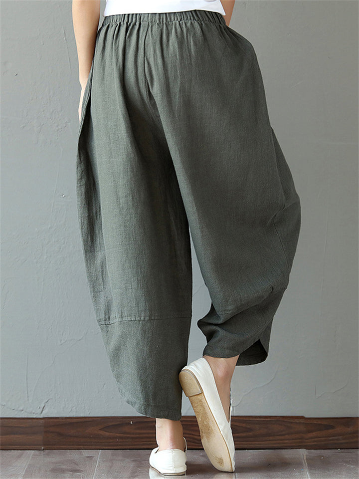 Women's Summer Cool Solid Color Elastic Waist Drawstring Pants