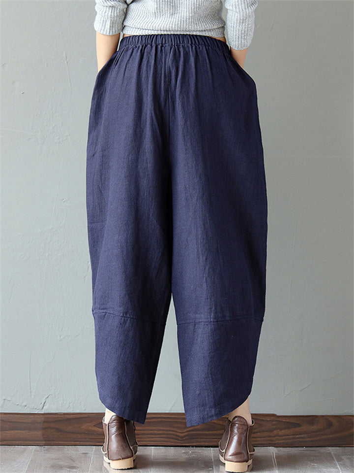 Women's Ethnic Style Embroidery Solid Color Elastic Waist Wide Leg Pants