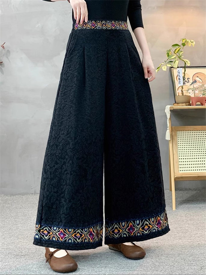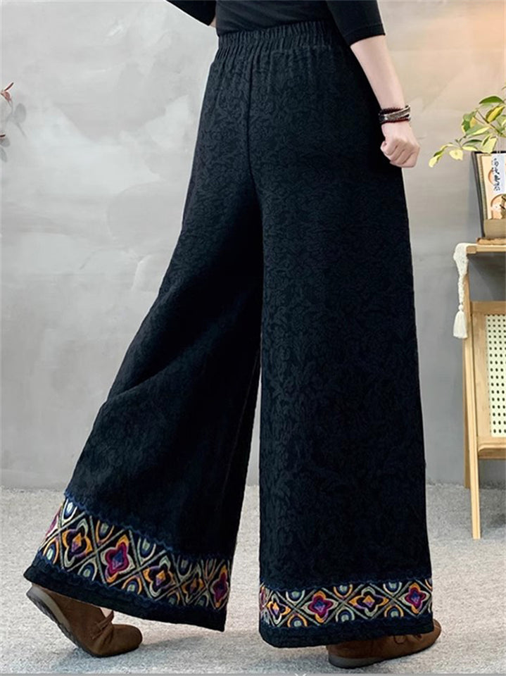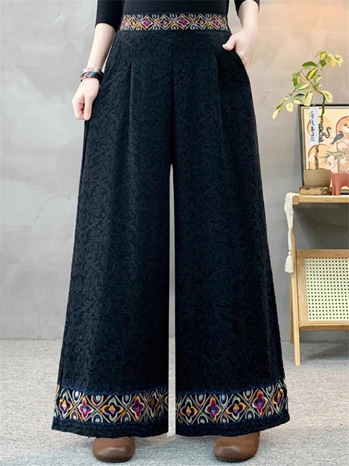 Women's Simple Comfy Ethnic Style Embroidered Wide Leg Pants