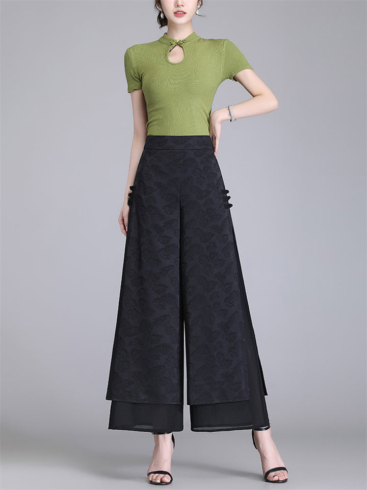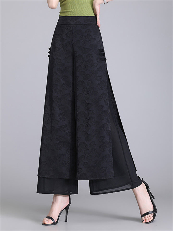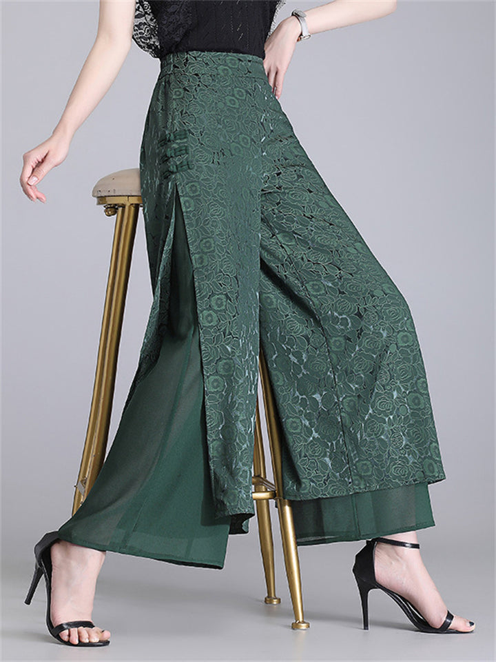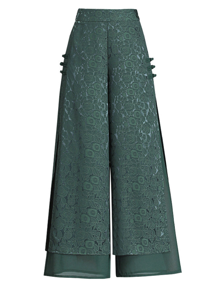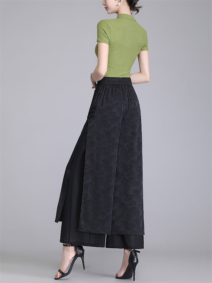 Women's Floral Leaf Jacquard High Slit Layered Pants