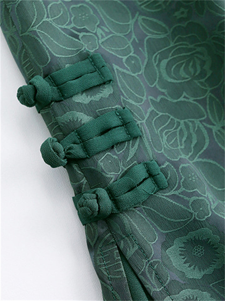 Women's Ethnic Style Floral Embroidered Frog Button Decor Wide Leg Pants