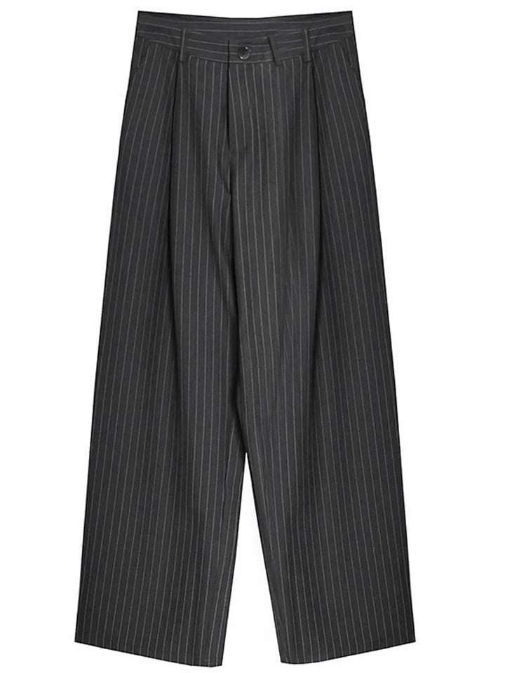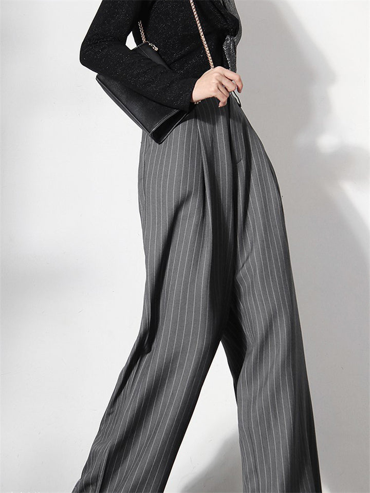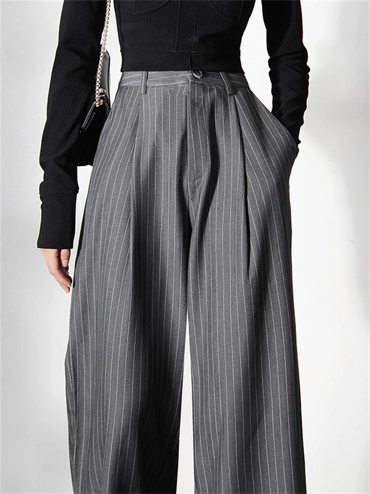 Women's Gray Stripe High-Waist Office Wide Leg Pants