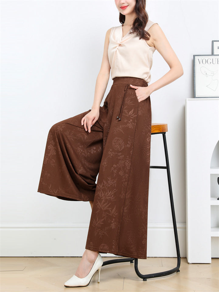 Women's Elegant Ethnic Style Heavy Industry Embroidery Wide Leg Pants