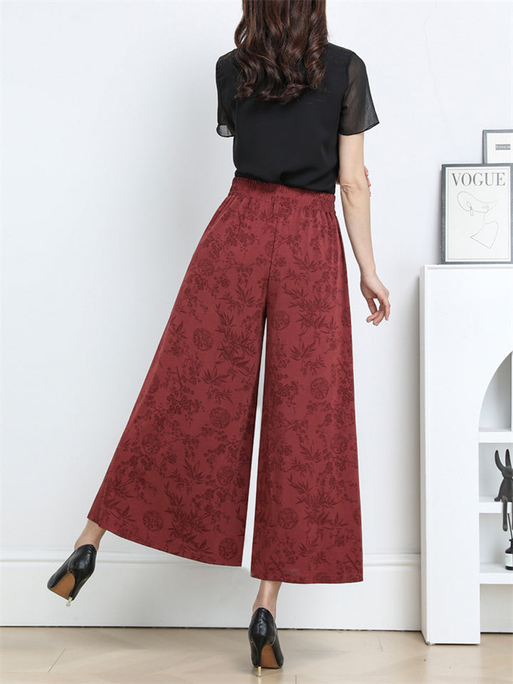 Women's Simple Ethnic Style Printed Comfy Wide Leg Pants