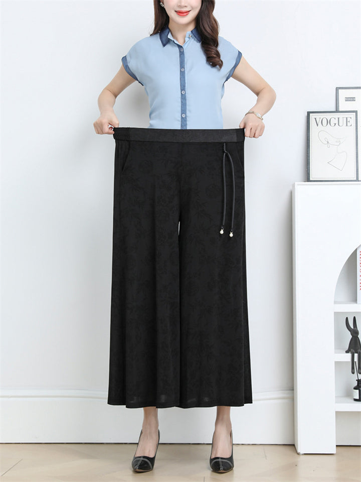 Women's Embossed Jacquard Tie-Waist Wide Leg Cropped Bloomers Pants